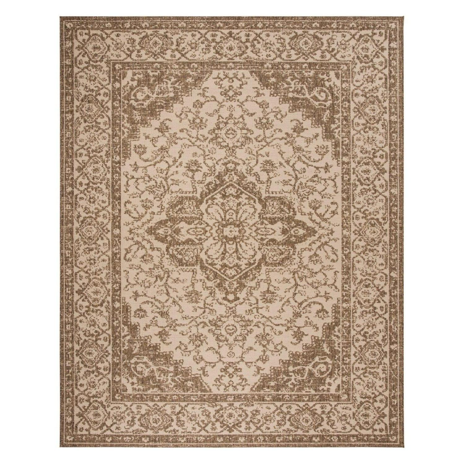 Safavieh Beach House Mai Traditional Outdoor Area Rug, Aqua/Cream, 7’10 x 10′