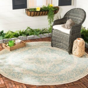 SAFAVIEH Beach House Stanice Medallion Indoor/Outdoor Area Rug, Aqua/Cream, 8′ x 10′