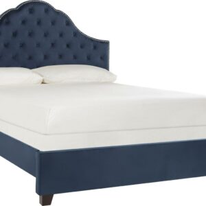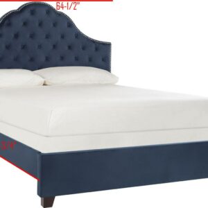 SAFAVIEH Beckham Bed Navy Queen Embrace the art of sleep with the grace and grandeur of this contemporary bed. Finely crafted with plush navy velvet upholstery from top to bottom, its deluxe tufted detail and polished nickel nailheads ensure a soothing, sophisticated bedroom.
