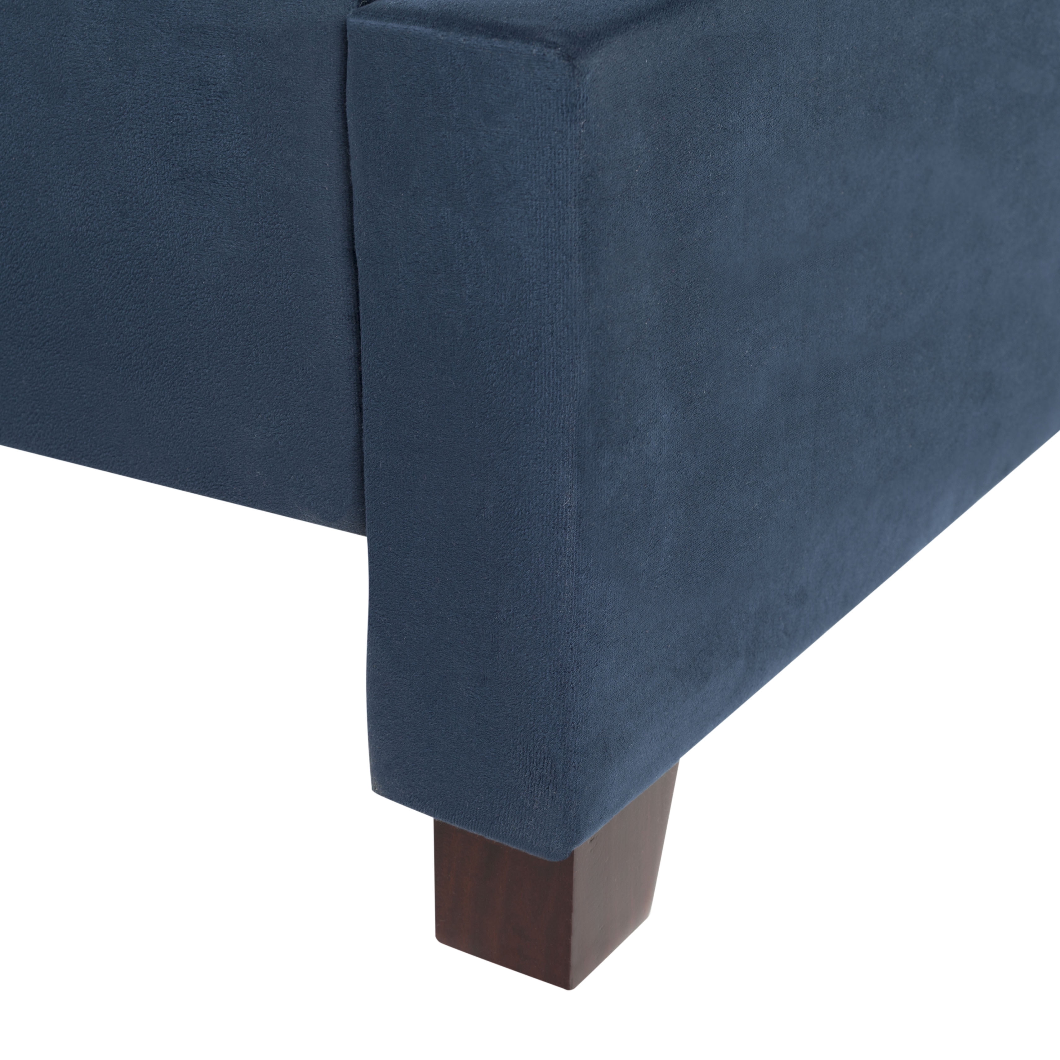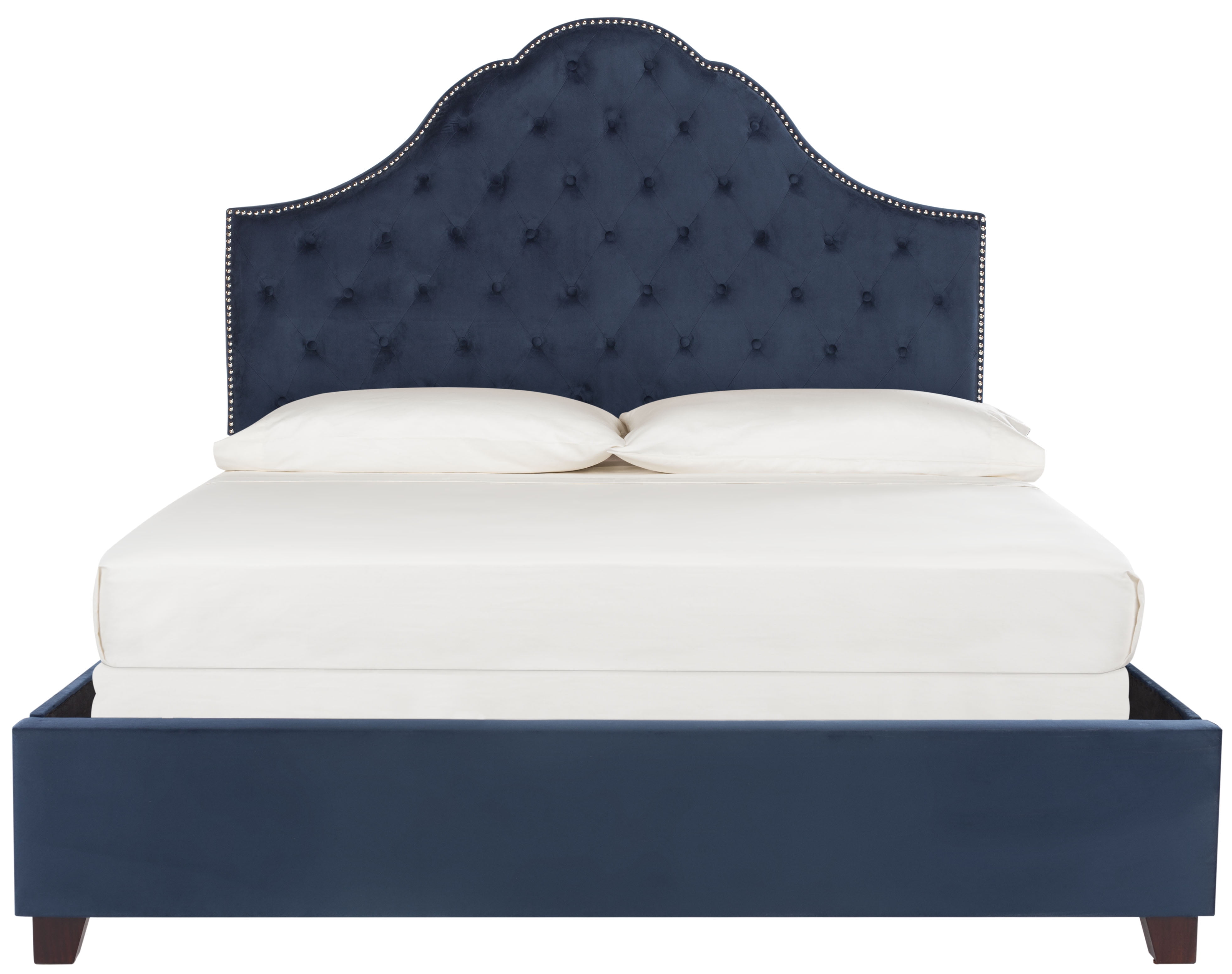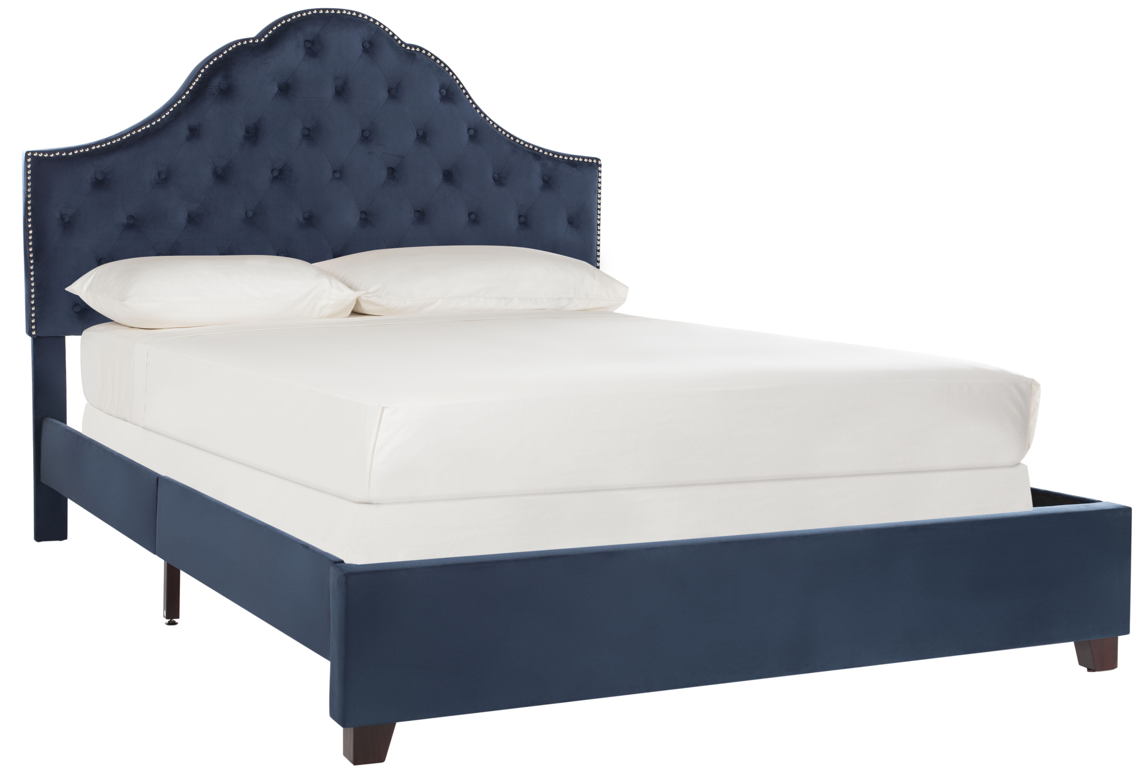 Shop SAFAVIEH at . Save Money. Live Better. SAFAVIEH Beckham Modern Glam Tufted Headboard with Nail Heads, Queen, Navy Embrace the art of sleep with the grace and grandeur of this contemporary bed. Finely crafted with plush navy velvet upholstery from top to bottom, its deluxe tufted detail and polished nickel nailheads ensure a soothing, sophisticated bedroom. For over 100 years, SAFAVIEH has set the standard for finely crafted rugs and home furnishings. Begin your rug, furniture, lighting, outdoor, and home decor search and discover over 100,000 SAFAVIEH products today.