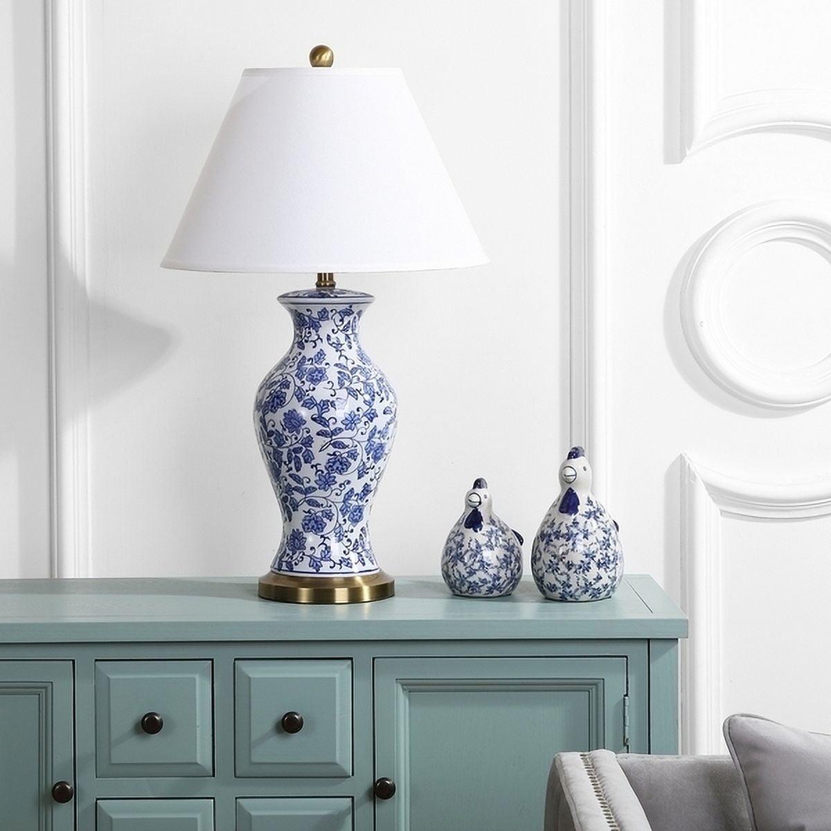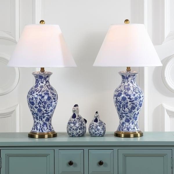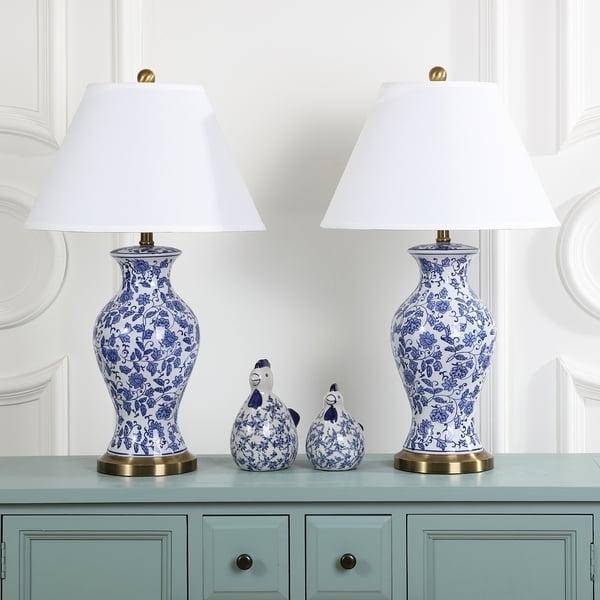 SAFAVIEH Beijing 29 in. H Floral Urn Table Lamp, Blue/White, Set of 2