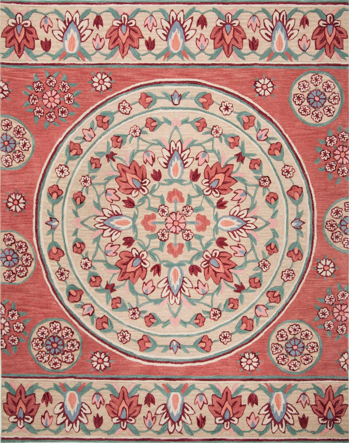 SAFAVIEH Bellagio Benedict Floral Wool Area Rug, Red/Beige, 8′ x 10′