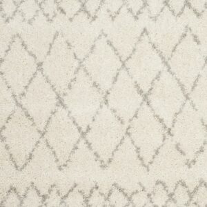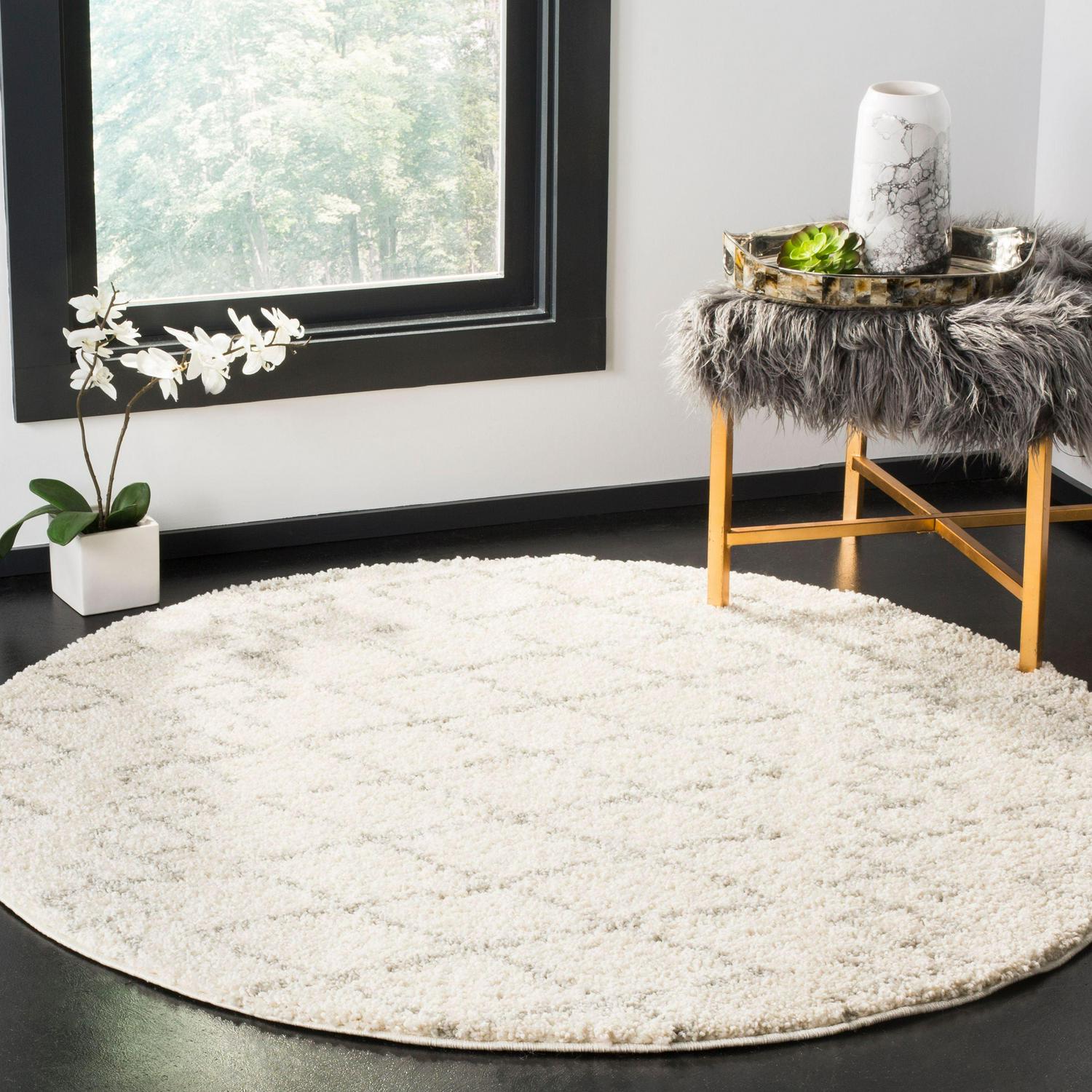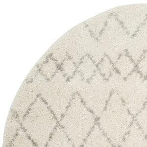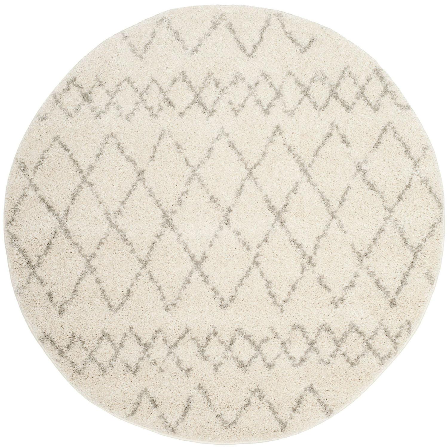 SAFAVIEH Berber Avery Geometric Diamonds Shag Area Rug, Cream/Light Grey, 5’1 Round