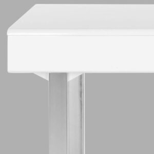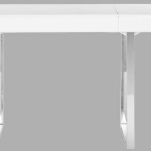Clean and streamlined, the sleek white finish of the contemporary Berkley desk is contrasted by sculptural chrome legs for a dressy workspace in any room. Artful and utilitarian, this desk opens like a refectory table to reveal storage for pens and paper.