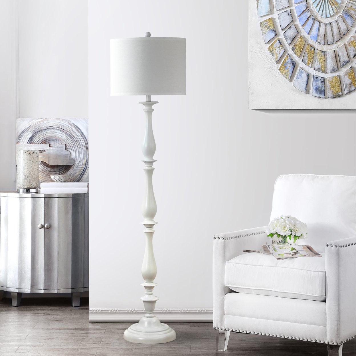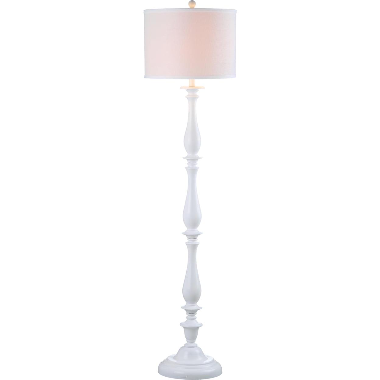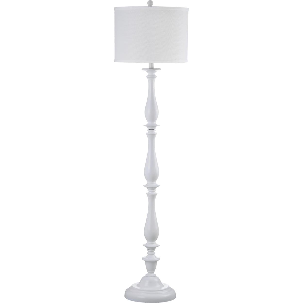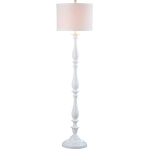 SAFAVIEH Bessie Candlestick Floor Lamp | White | The sleek white curves of the Bessie Candlestick Floor Lamp are an urban spin on a traditional style. Its smooth plastic base and chic white cotton drum shade are ideal for the contemporary interior in need of a young, modern glow. Begin your rug, furniture, lighting, outdoor, and home decor search and discover over 100,000 SAFAVIEH products today.