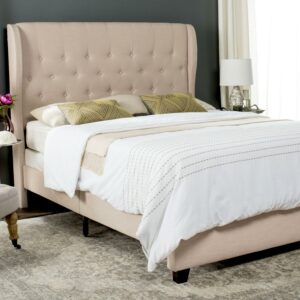 SAFAVIEH Blanchett Modern Retro Tufted Bed Frame, Queen, Light Beige