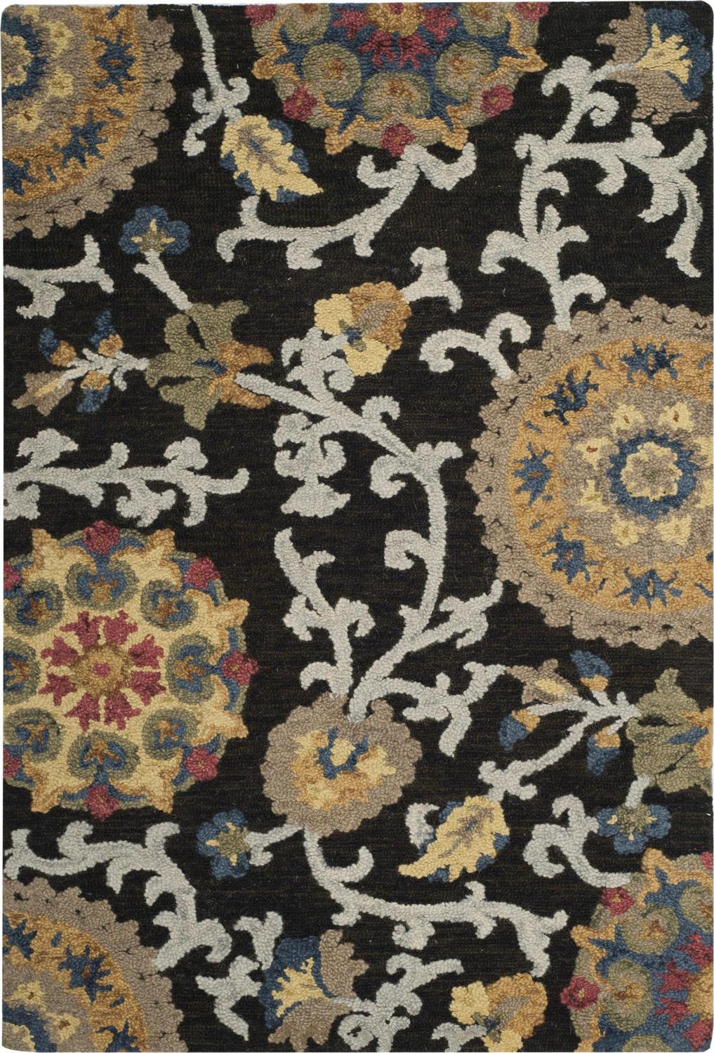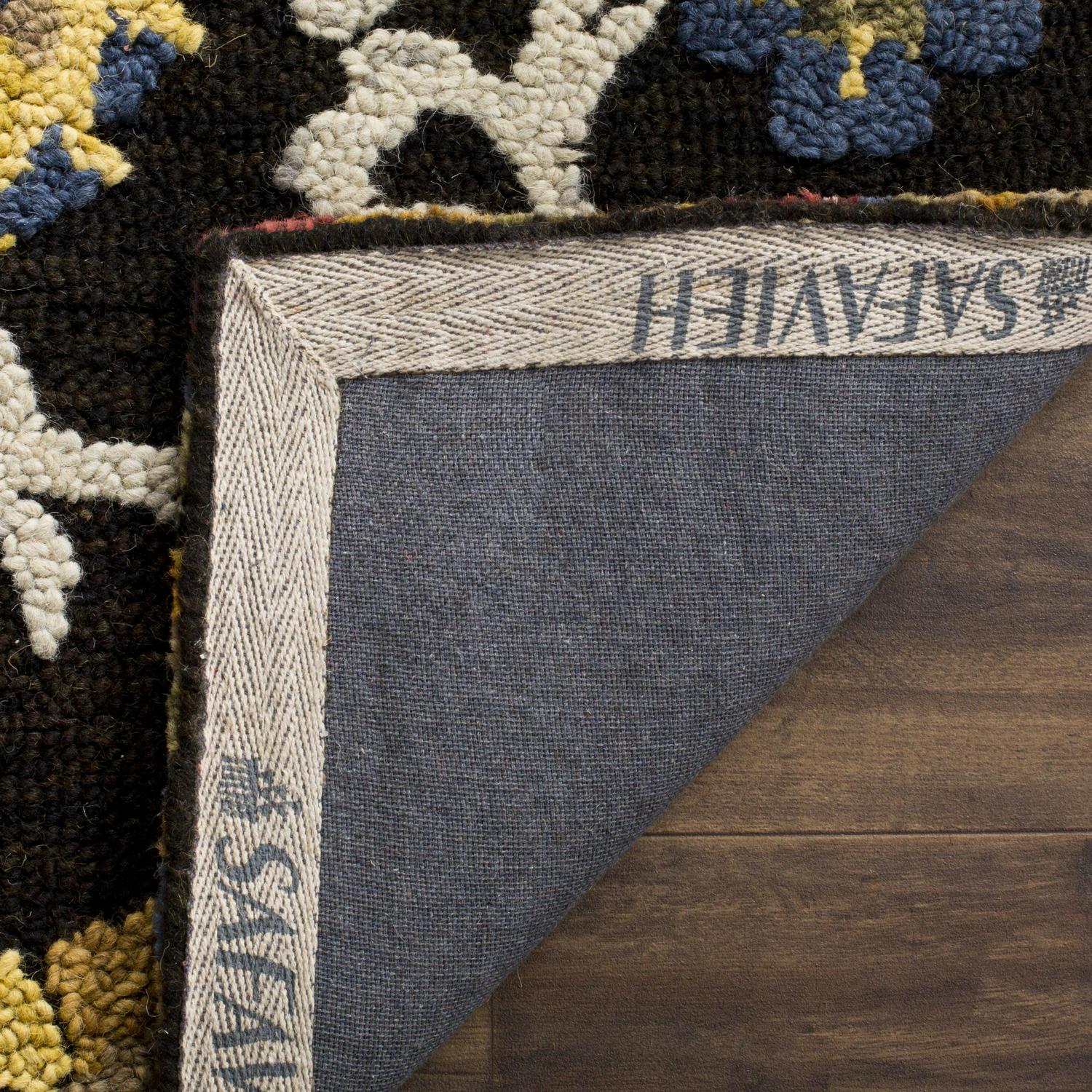 SAFAVIEH Blossom BLM401A Handmade Charcoal / Multi Rug The rugs of the Blossom Collection are bold, colorful updates of classic hooked rugs. Made using large hand woven loops, the texture of Blossom rugs inspires a fresh approach to country casual interiors. Woven of 100-percent premium wool, Blossom area rugs bring traditional English chintz and block print motifs into today’s cultured home decor. Rug has an approximate thickness of 0.5 inches.