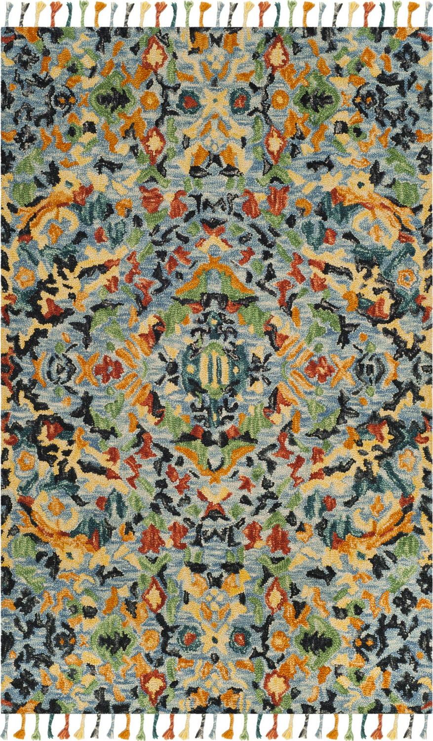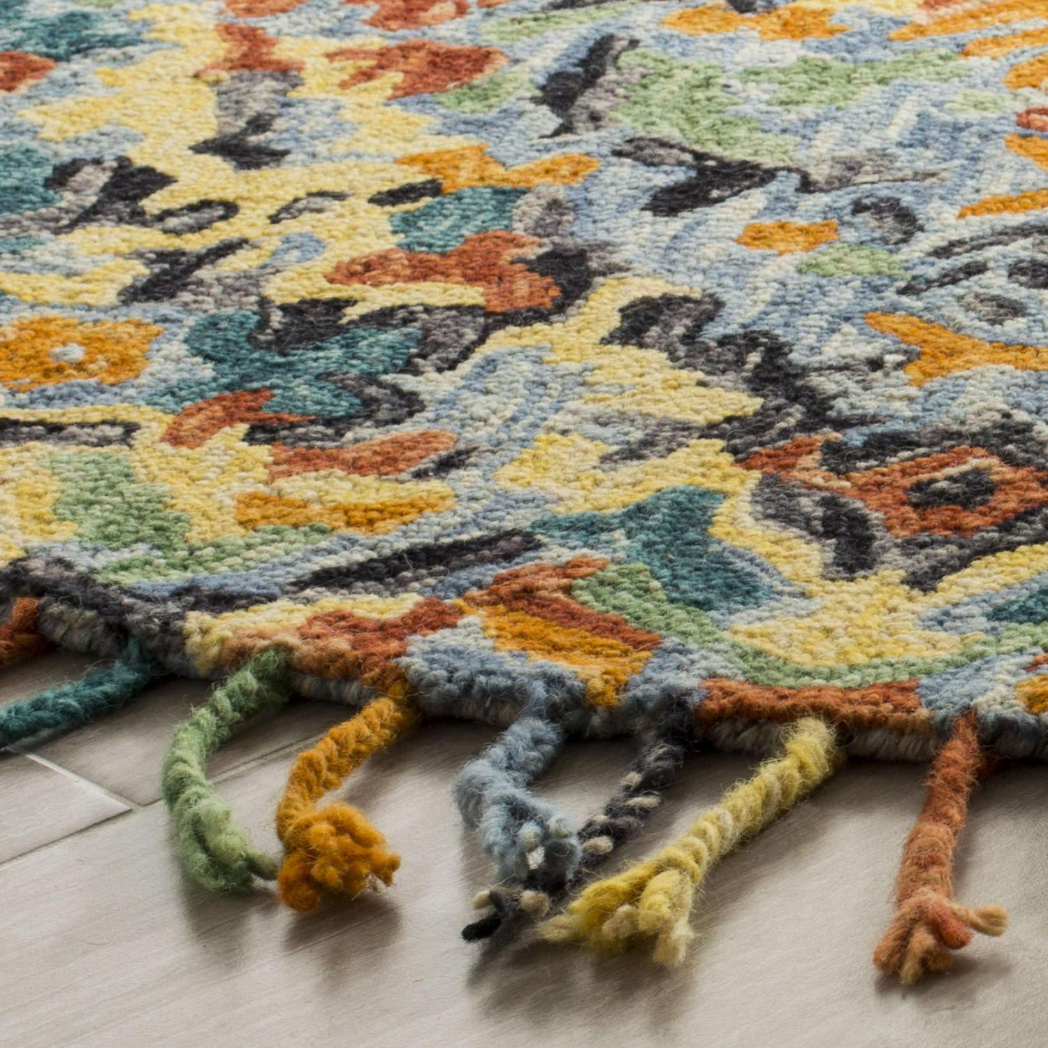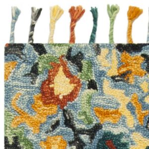 SAFAVIEH Blossom Everitt Floral Wool Fringed Area Rug, Blue/Multi, 5′ x 8′