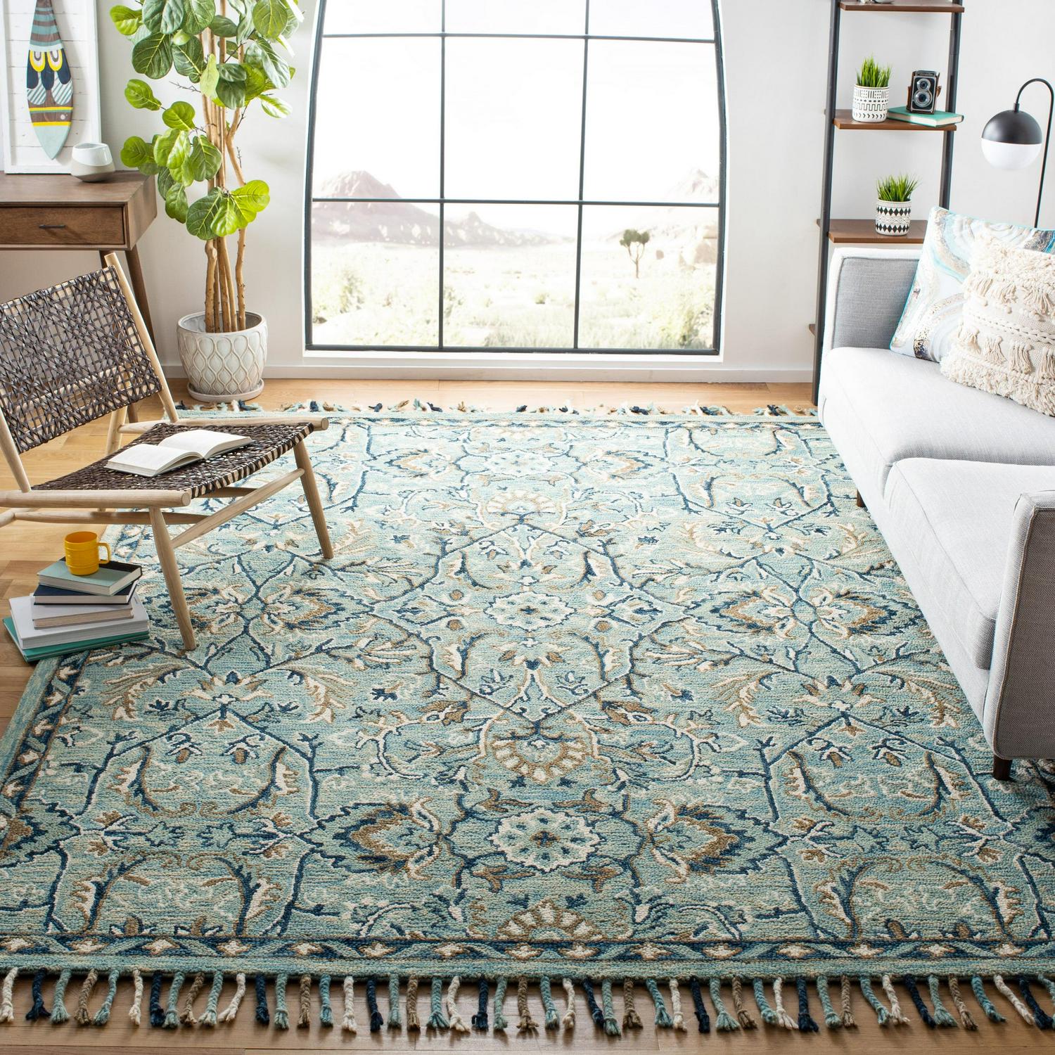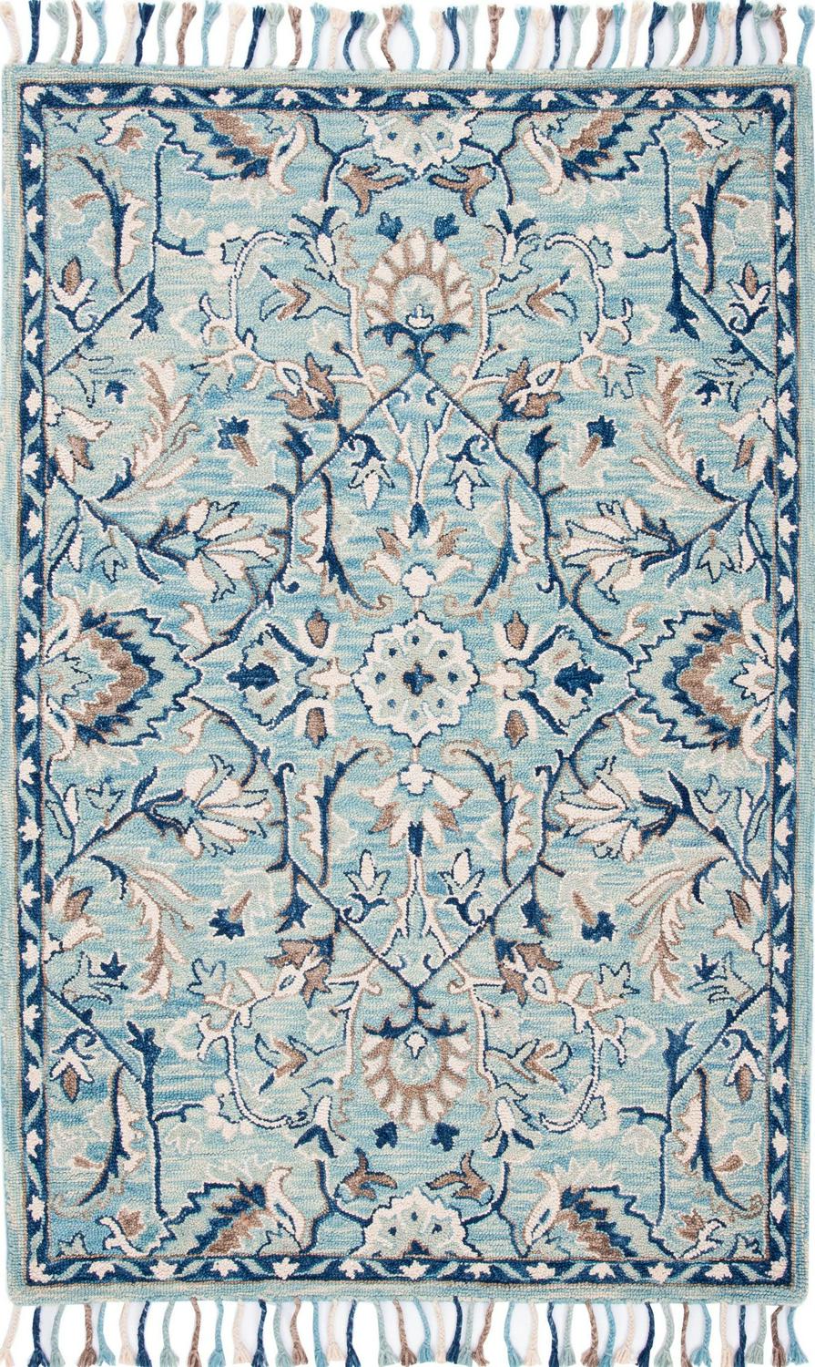 SAFAVIEH Blossom Frona Floral Wool Fringed Area Rug, Blue/Ivory, 3′ x 5′