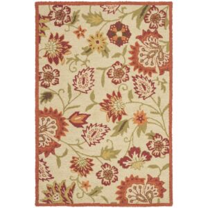 SAFAVIEH Blossom Leah Floral Flowers Wool Area Rug, Beige/Multi, 6′ x 6′ Round