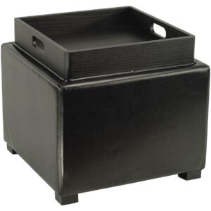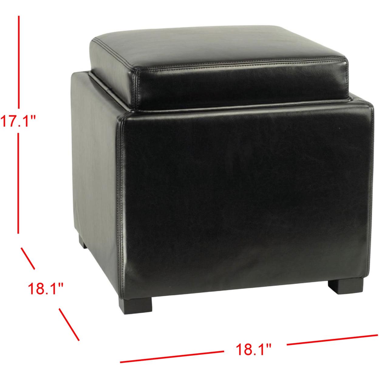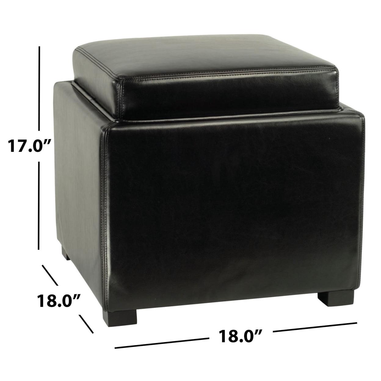 SAFAVIEH Bobbi Tray Storage Ottoman Black The flip top of this Bobbi Tray Storage Ottoman brings both fashion and function to any interior. Plush to the touch in black PU leather, Bobbi sits atop beechwood legs in a rich java finish and boasts a clever lid that transforms from tray table to comfortable seat with ease.