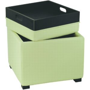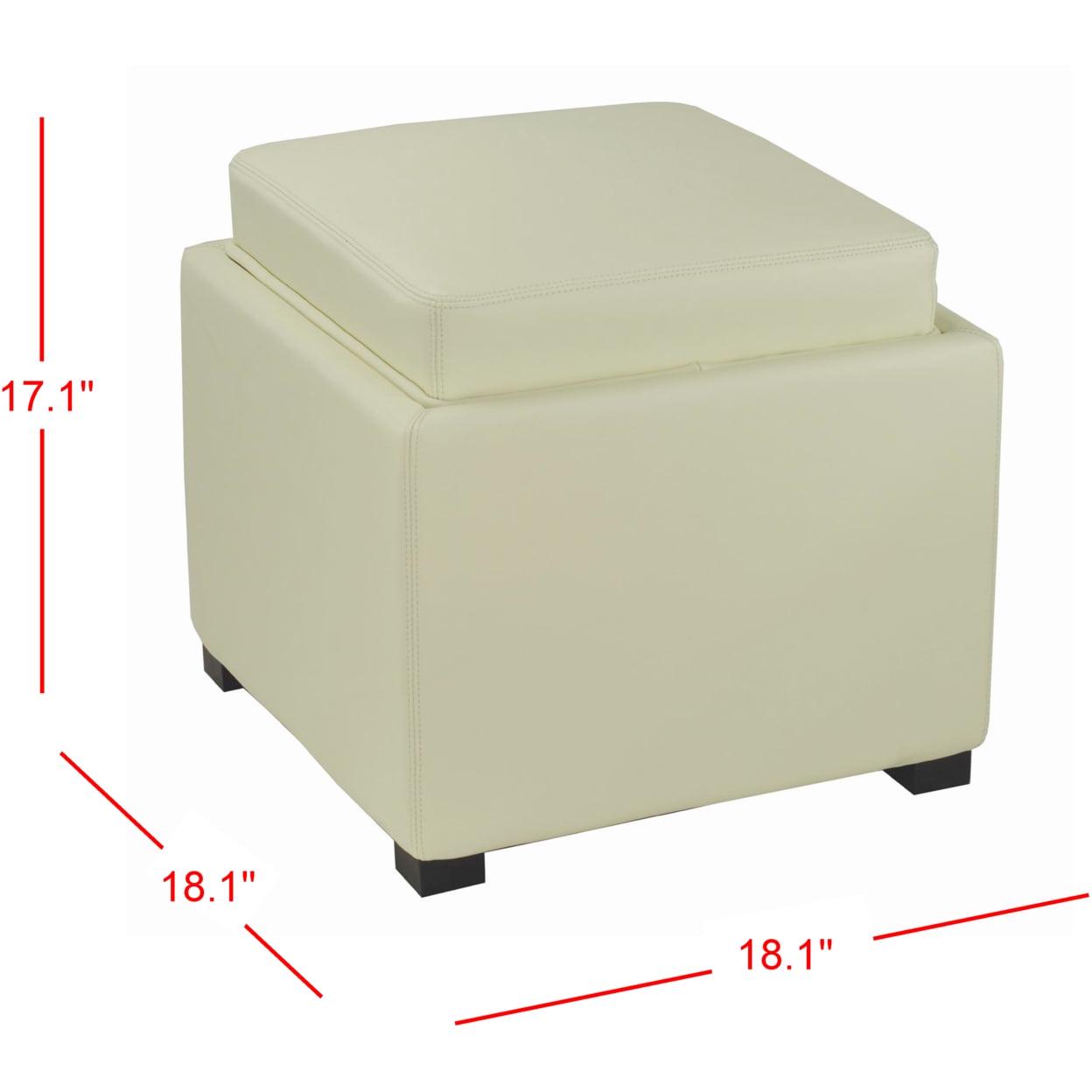 SAFAVIEH Bobbi Tray Storage Ottoman Flat Cream The flip top of this Bobbi Tray Storage Ottoman brings both fashion and function to any interior. Plush to the touch in off white PU leather, Bobbi sits atop beechwood legs in a rich java finish and boasts a clever lid that transforms from tray table to comfortable seat with ease.