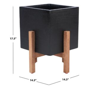 SAFAVIEH Outdoor Collection Borsla Planter Natural/Black Bring sleek minimalism to the great outdoors with this Borsla Planter. Borsla s stark angles pair well with the organic shapes of flowers, giving any porch or patio a touch of modern chic. The black hue of its concrete cube highlights the natural finish on its acacia legs.