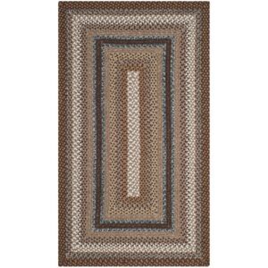 SAFAVIEH Braided BRD313A Handwoven Brown / Multi Rug SAFAVIEH updates the enduring beauty and charm of the braided rug, a beloved American classic. Fashion right colors and modern fibers make our braided rug collection perfect for casual 21st century homes and lifestyles, and their easy care properties make SAFAVIEH’s braided rugs a practical choice for families. Rug has an approximate thickness of 0.25 inches.