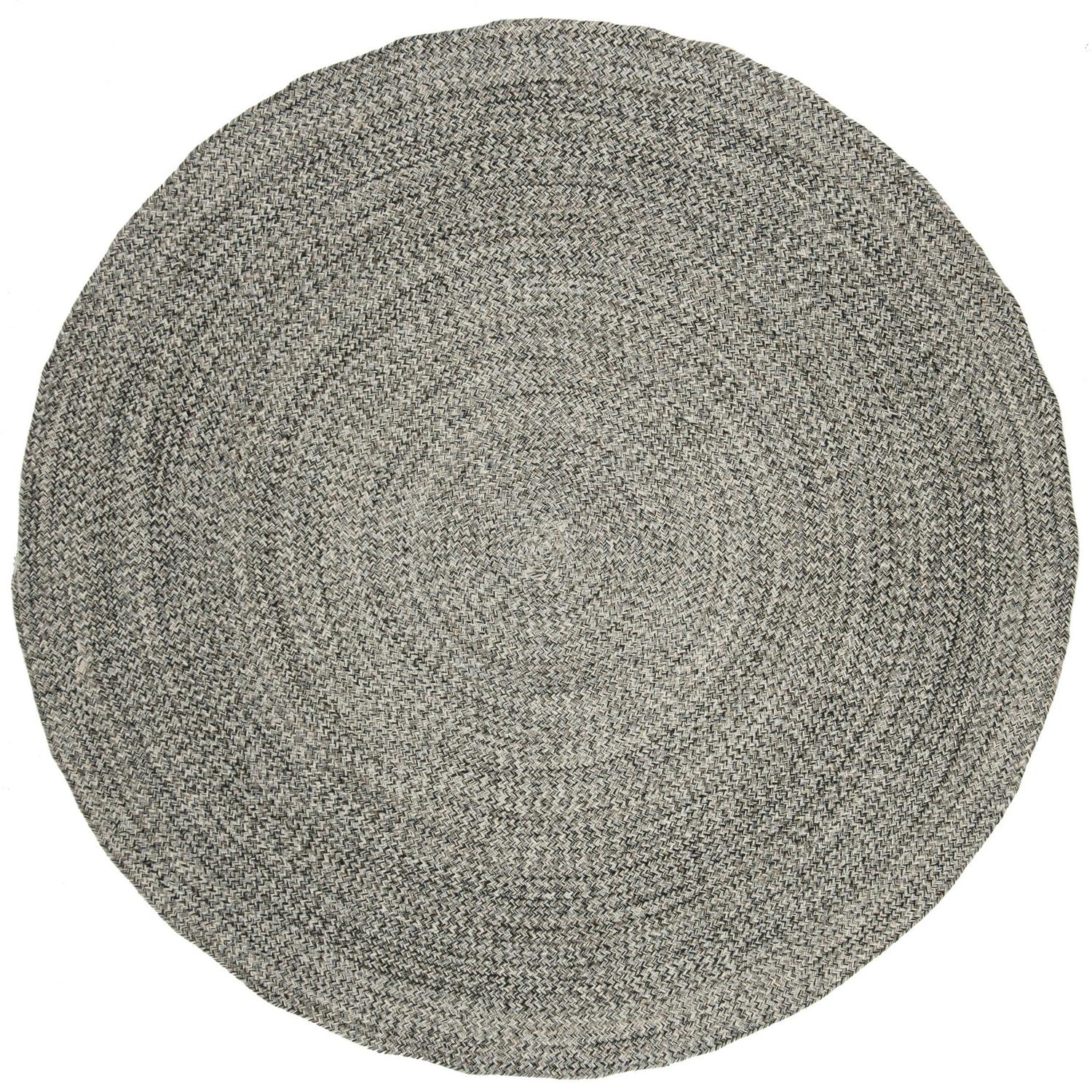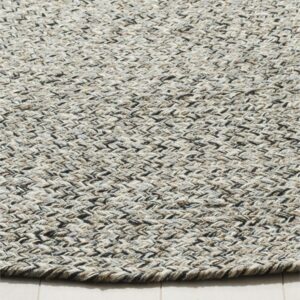 SAFAVIEH Braided Harmon Distressed Striped Area Rug, Ivory/Steel Grey, 5′ x 5′ Round