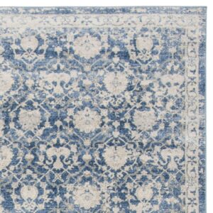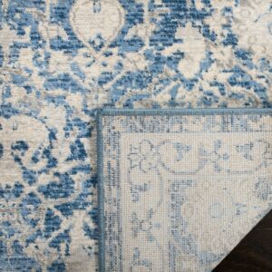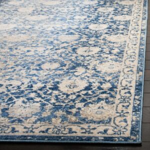 SAFAVIEH Brentwood Collection BNT896N Navy / Creme Rug The Brentwood Collection rug collection features gorgeous heirloom-inspired area rugs that range from traditional to boho styles. Trendy distressed effects area created from a machine-woven construction with virtually non-shedding enhanced fibers to create a majestic look for any room of the home. Rug has an approximate thickness of 0.31 inches.