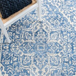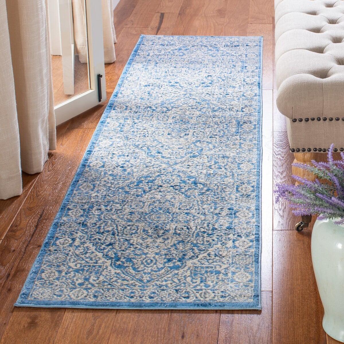 SAFAVIEH Brentwood Jaymz Floral Bordered Runner Rug, 2′ x 10′, Ivory/Navy
