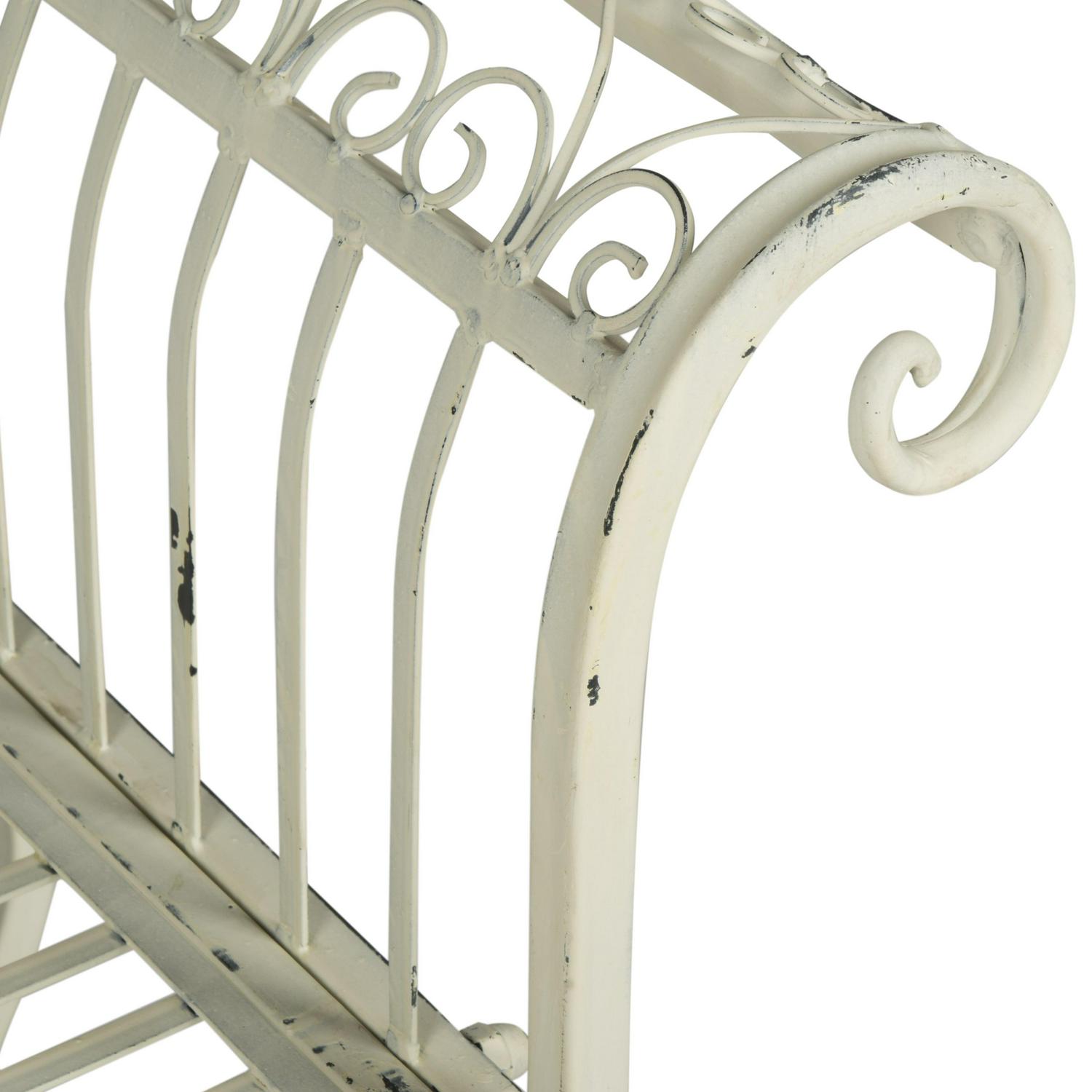Inspired by the intricate detailing on Victorian homes, the fanciful ironwork on this antique white outdoor bench is so pretty you ll want to bring it inside. From outdoor porch to indoor foyer, this bench has all the character of a flea market find.