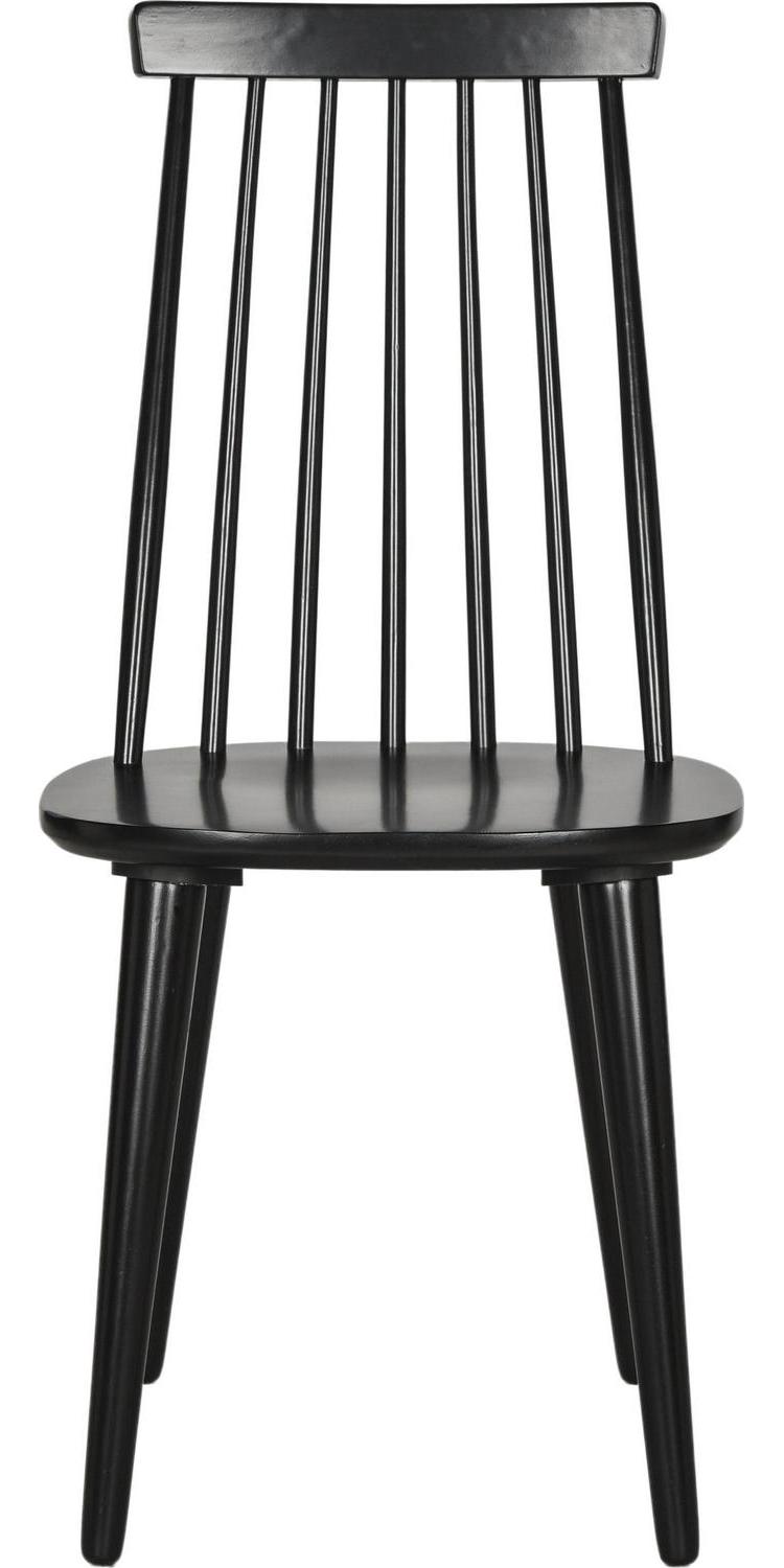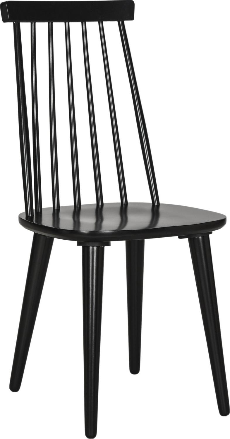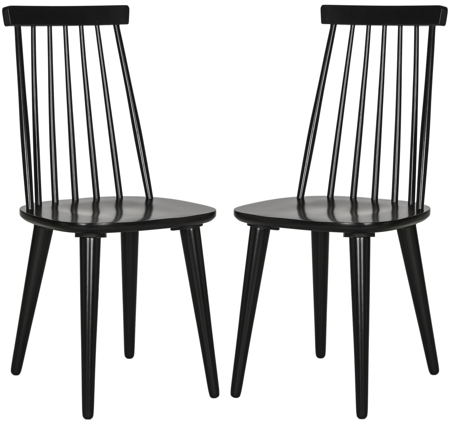 A perennial favorite, the classic Windsor dining chair gets a bit of transitional flair with the tapered back silhouette and black finish of this sleek design. Crafted of sustainable rubber wood, this set of two brings comfort and style to the table.
