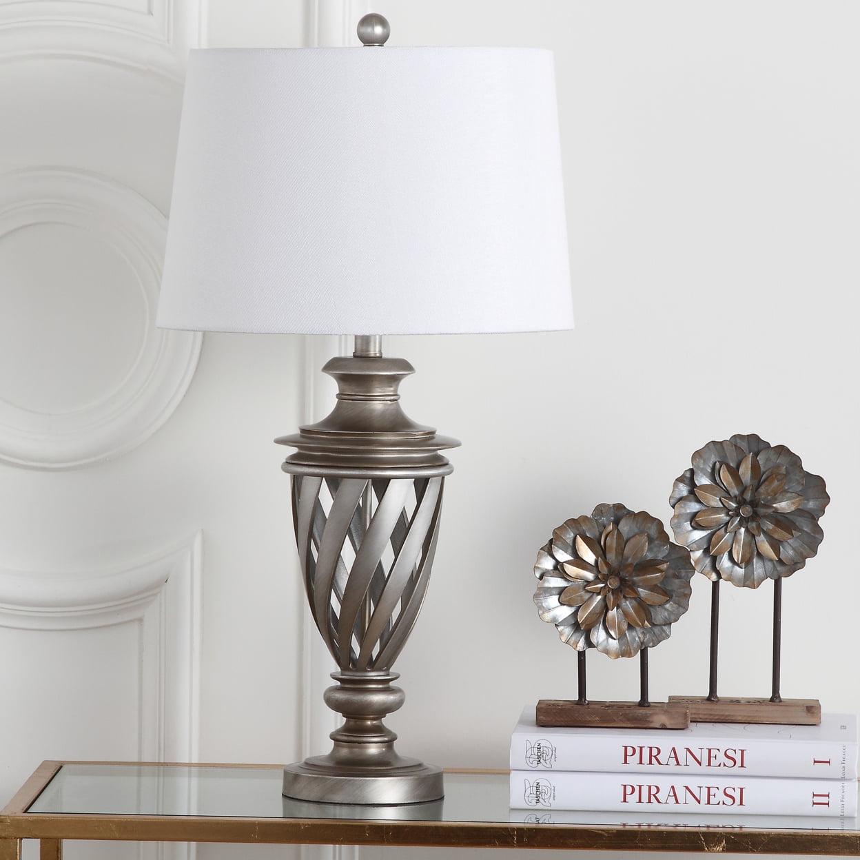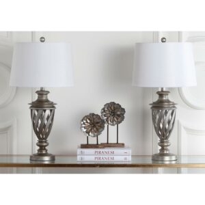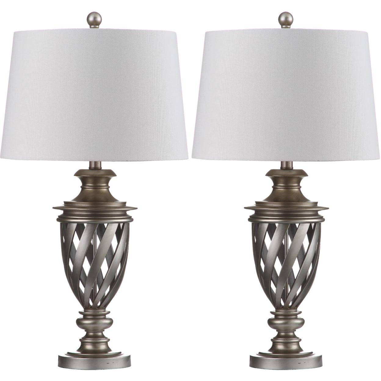 SAFAVIEH Byron Urn Lamp (Set of 2) It’s an ode to a Grecian urn. This Byron Table Lamp (set of two) is a nod to the timelessness of classic beauty and form. Its latticed metal base in antique silver and crisp white cotton shade will have guests in awe of this tribute to antiquity. Begin your rug, furniture, lighting, outdoor, and home decor search and discover over 100,000 SAFAVIEH products today.