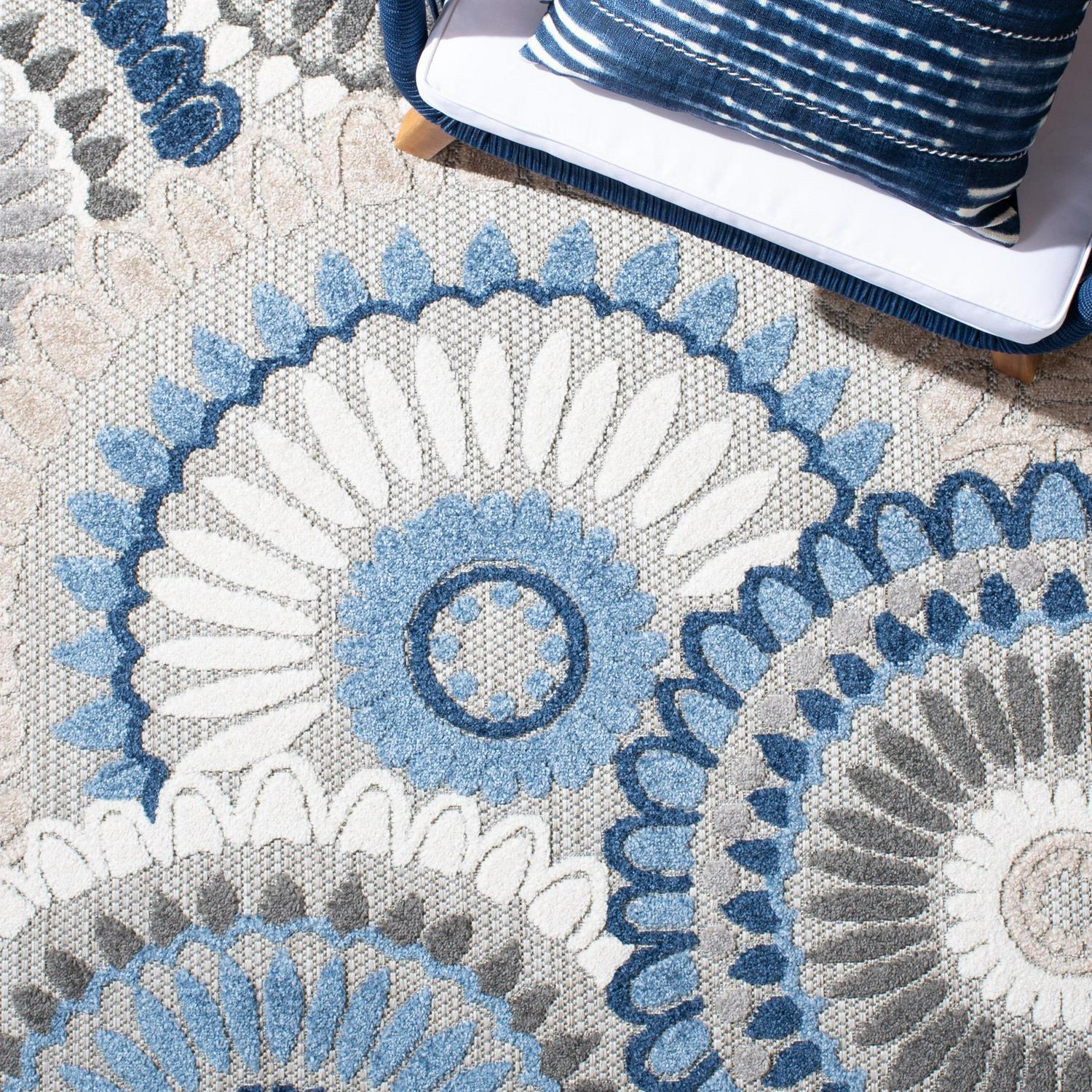 SAFAVIEH Cabana Brynn Indoor/Outdoor Area Rug, Grey/Blue, 5′ x 8′