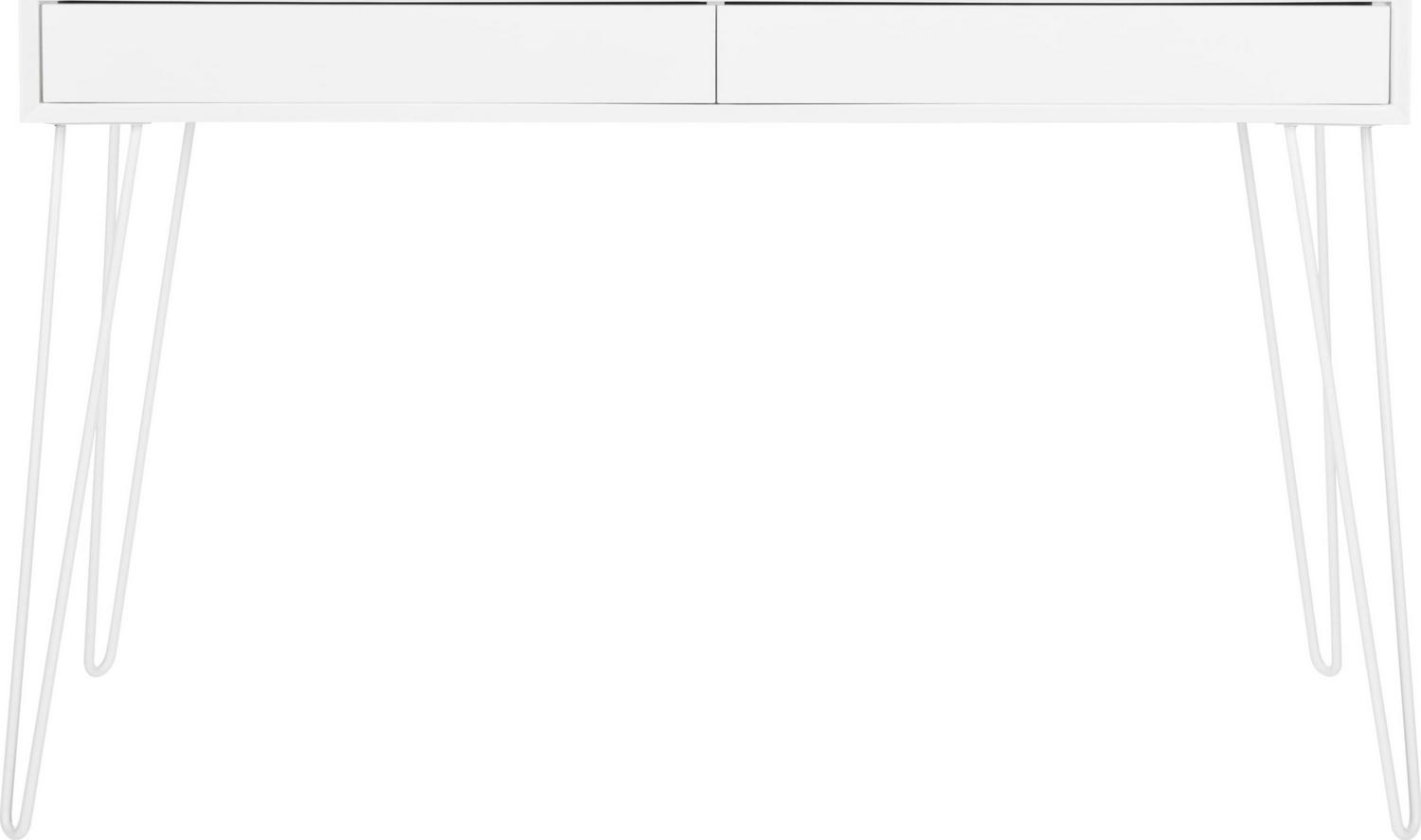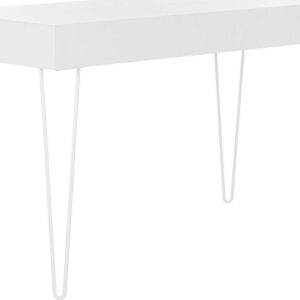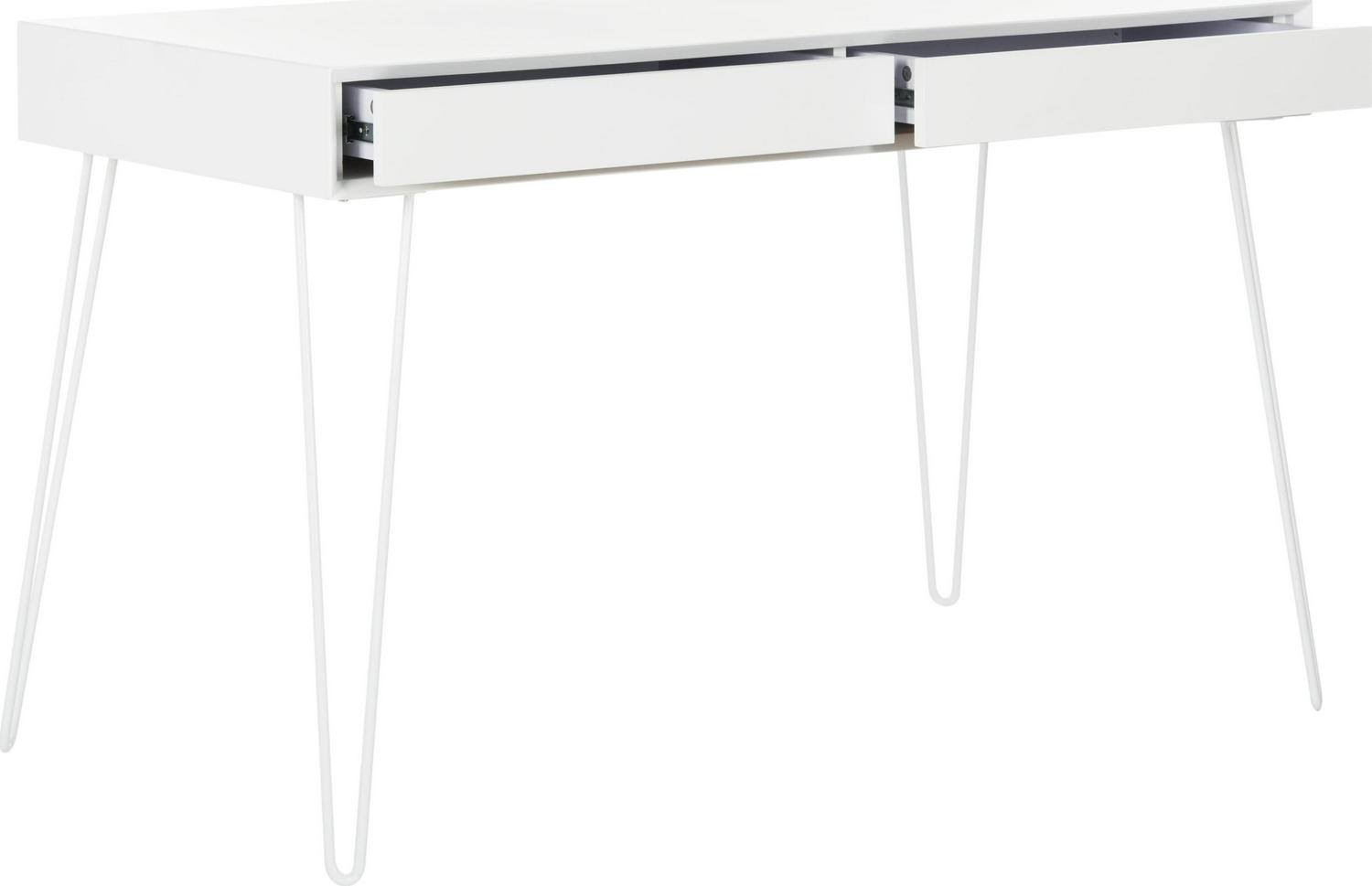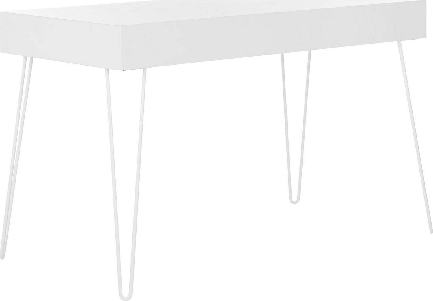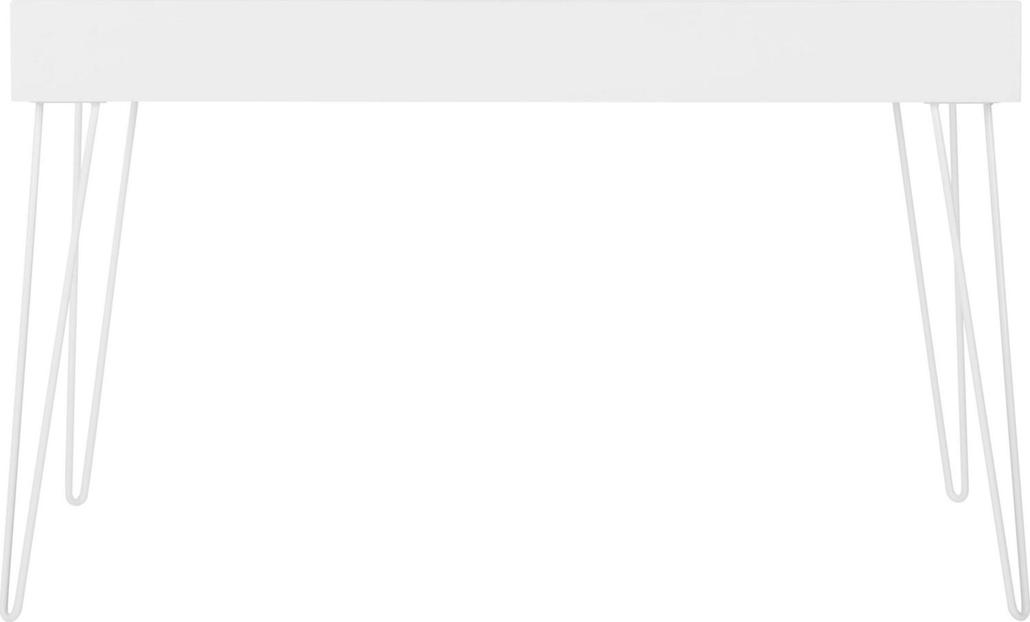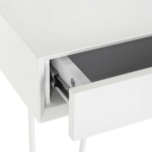 The star pupil of any workspace, this contemporary desk elevates the modern home office with its fresh style. Sculptural white metallic legs and a smooth matte finish are paired with an aesthetically pleasing hidden drawer for keeping the workspace tidy.