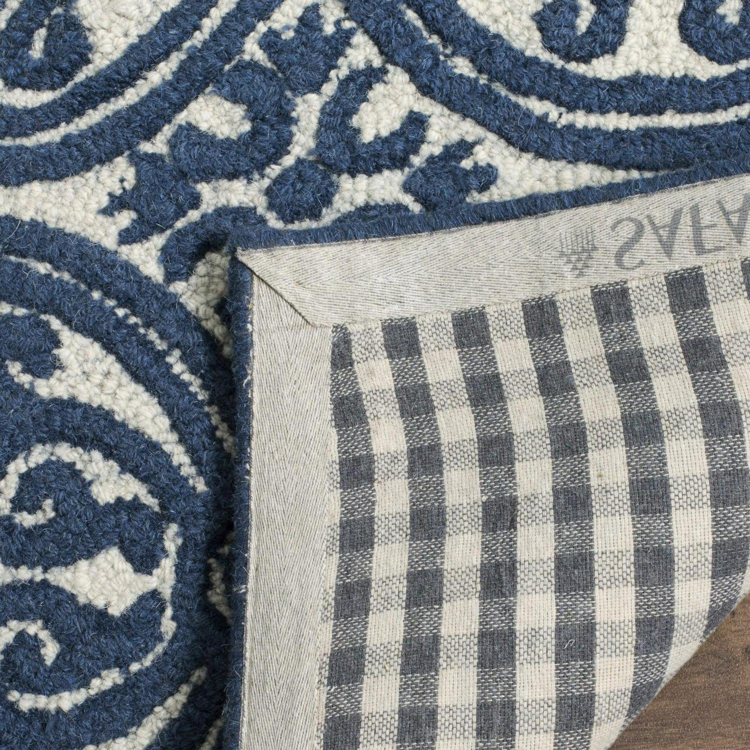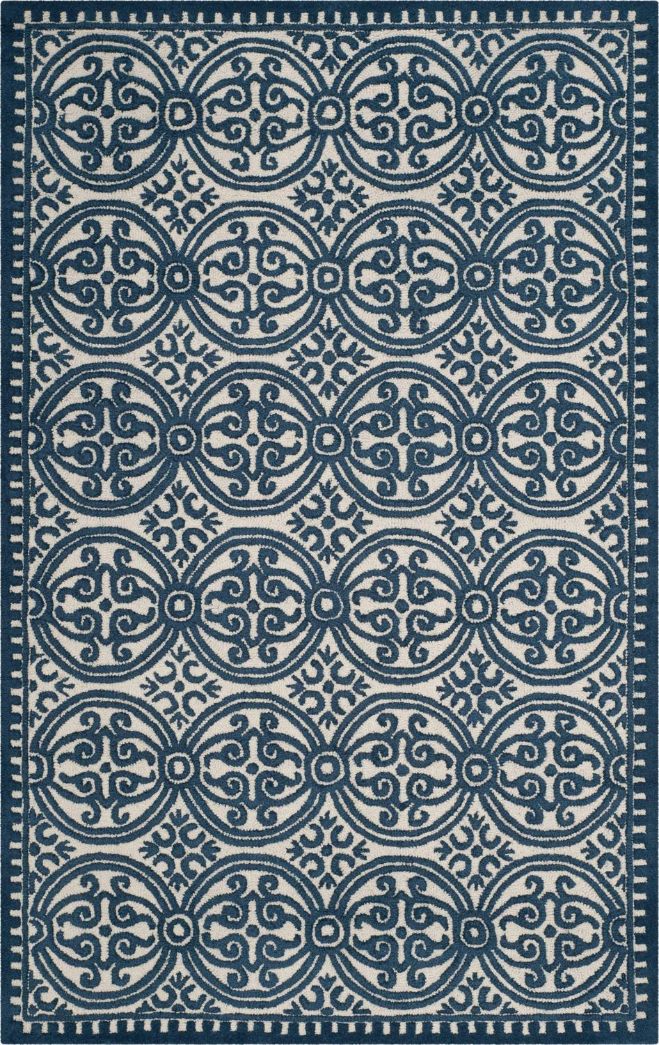 SAFAVIEH Cambridge Joseph Welsh Geometric Wool Area Rug, Ivory/Navy, 4′ x 6′