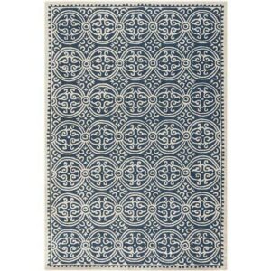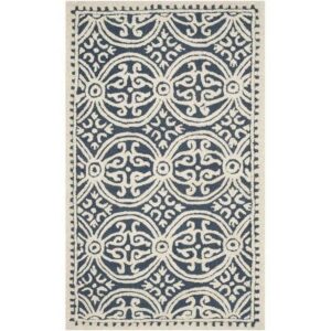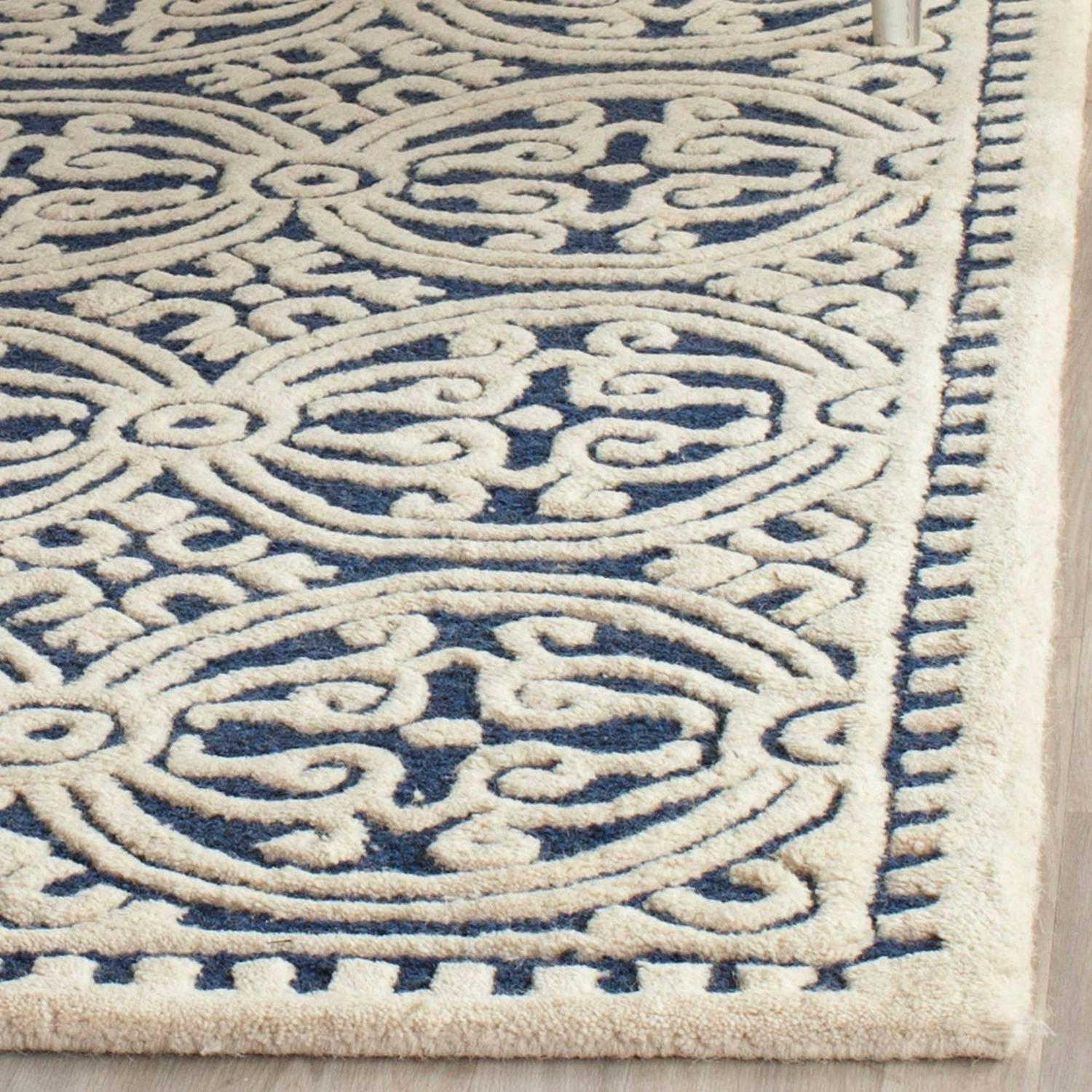 SAFAVIEH Cambridge Leslie Geometric Wool Area Rug, Navy Blue/Ivory, 8′ x 10′