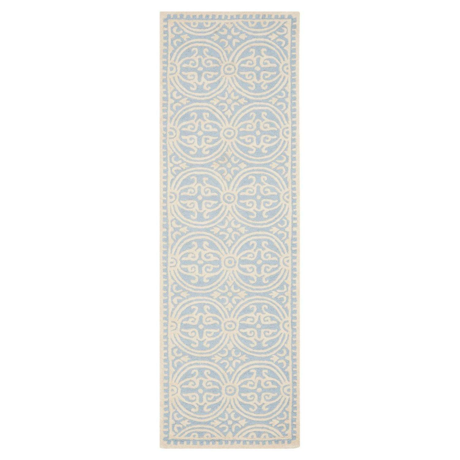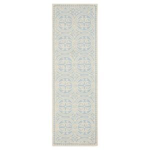 SAFAVIEH Cambridge Leslie Geometric Wool Runner Rug, Silver/Ivory, 2’6 x 10′
