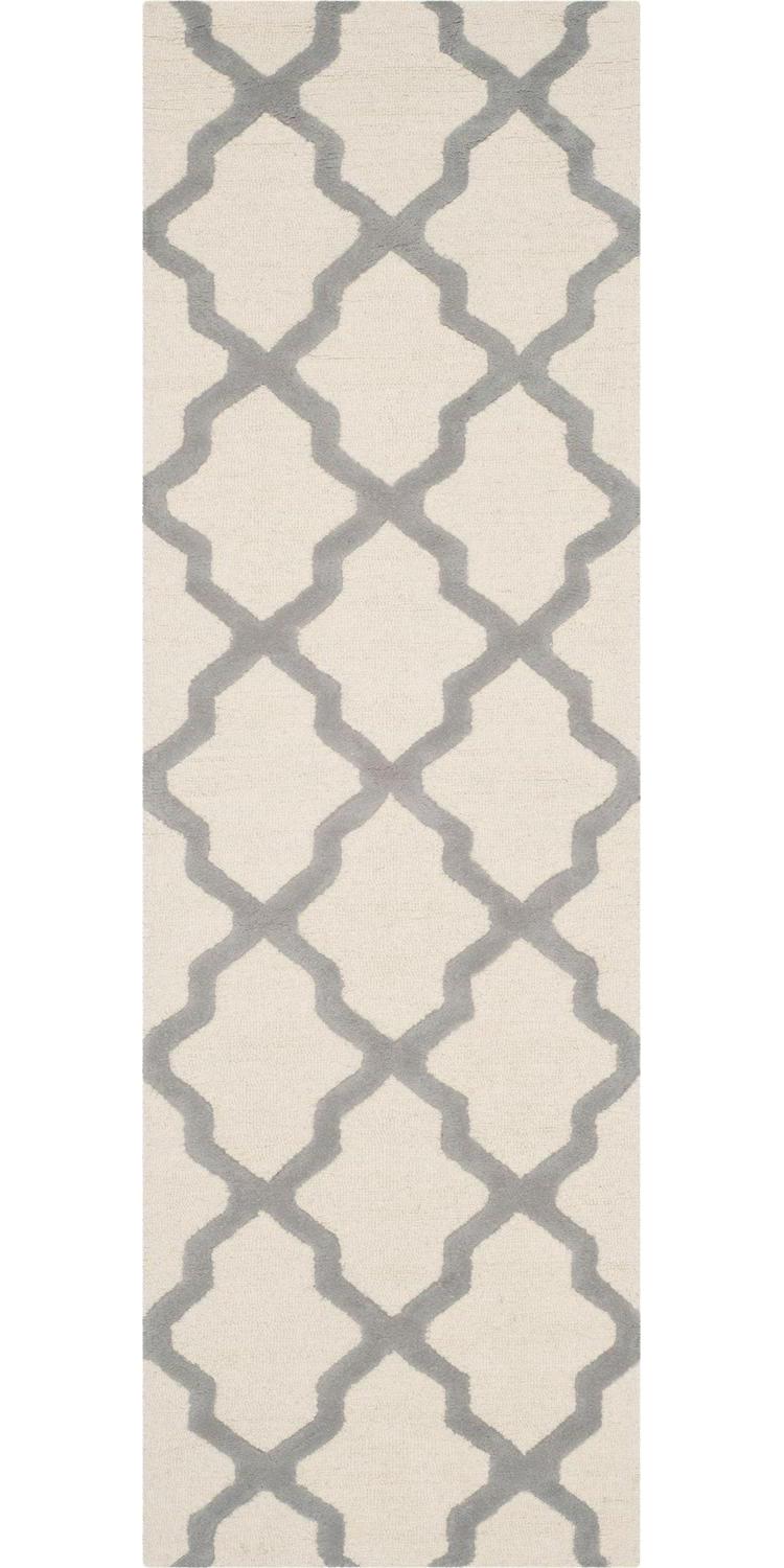 SAFAVIEH Cambridge Liam Geometric Wool Runner Rug, Ivory/Silver, 2’6 x 22′