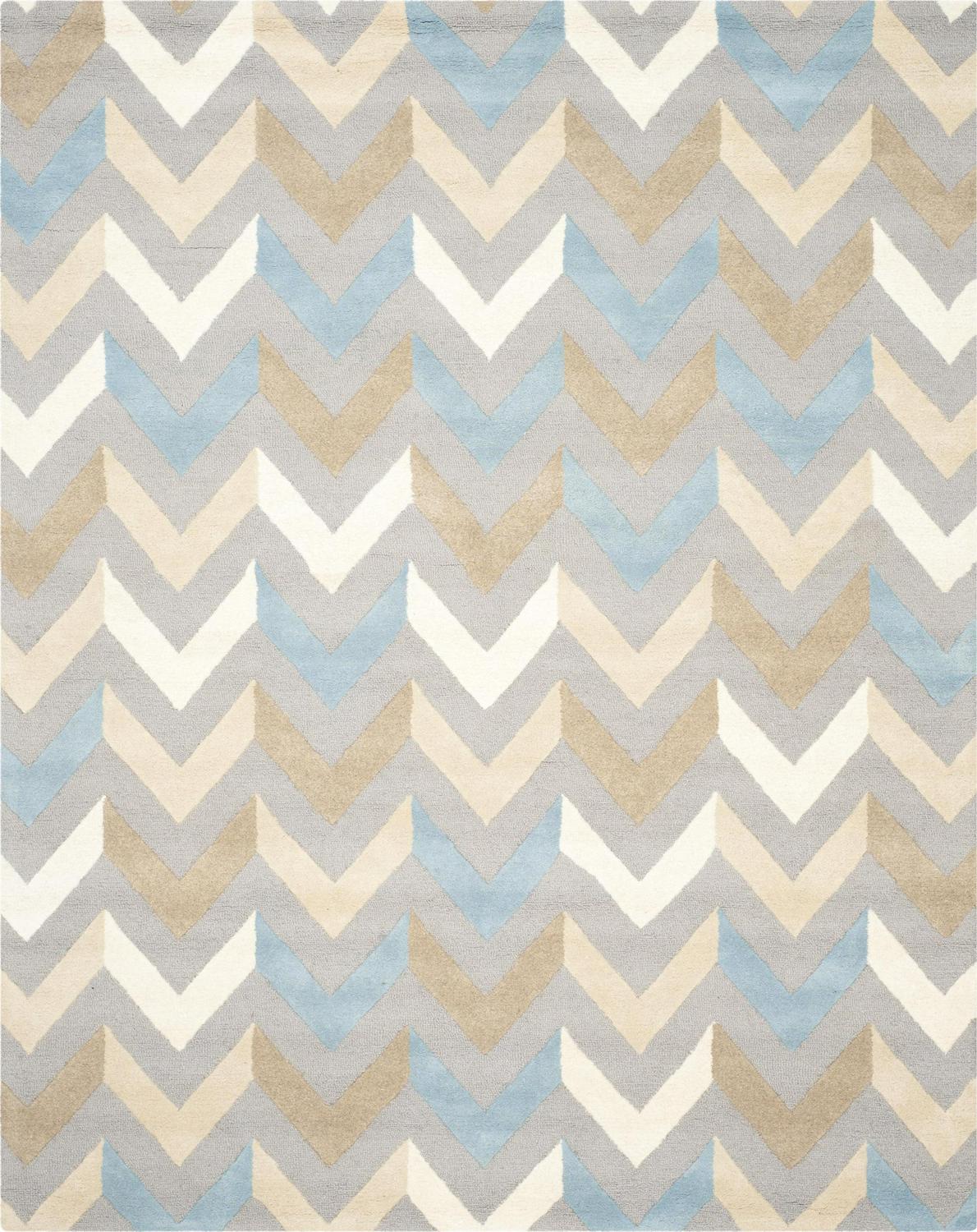 SAFAVIEH Cambridge Percival Zig Zag Stripes Wool Area Rug, Grey/Ivory, 9′ x 12′