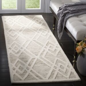 SAFAVIEH Cambridge Rordan Faded Geometric Wool Area Rug, Light Brown/Ivory, 5′ x 8′