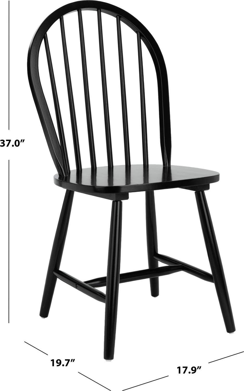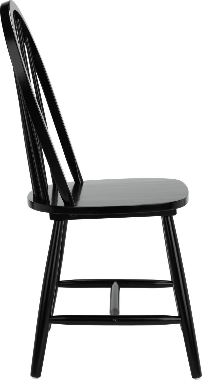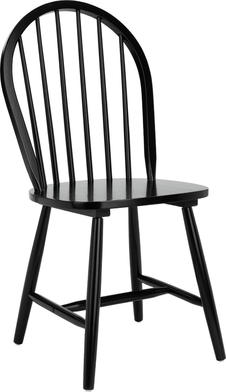 SAFAVIEH Camden Spindle Back Dining Chair Set of 2 Black The Camden Dining Chair brims with Americana allure in its classic oval spindle back design. Simple yet stylish, Camden invites you to the kitchen or dining room table, offering a smooth, sturdy seat crafted of chic black rubberwood. Comes in a set of two for smart, practical dining.