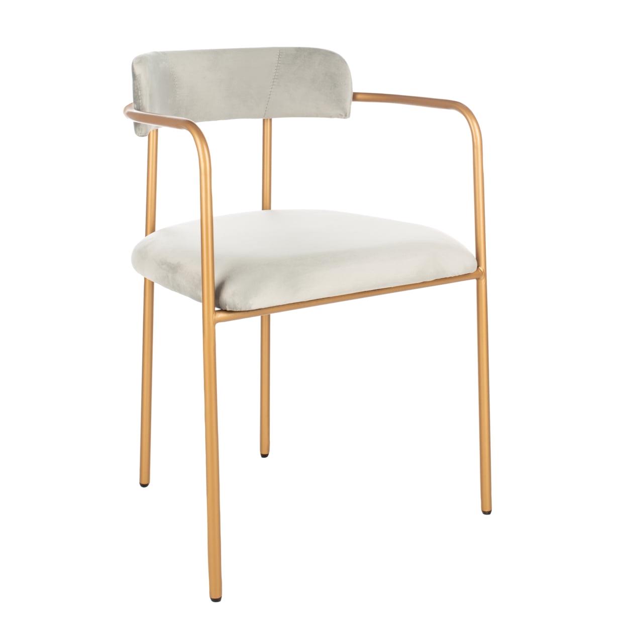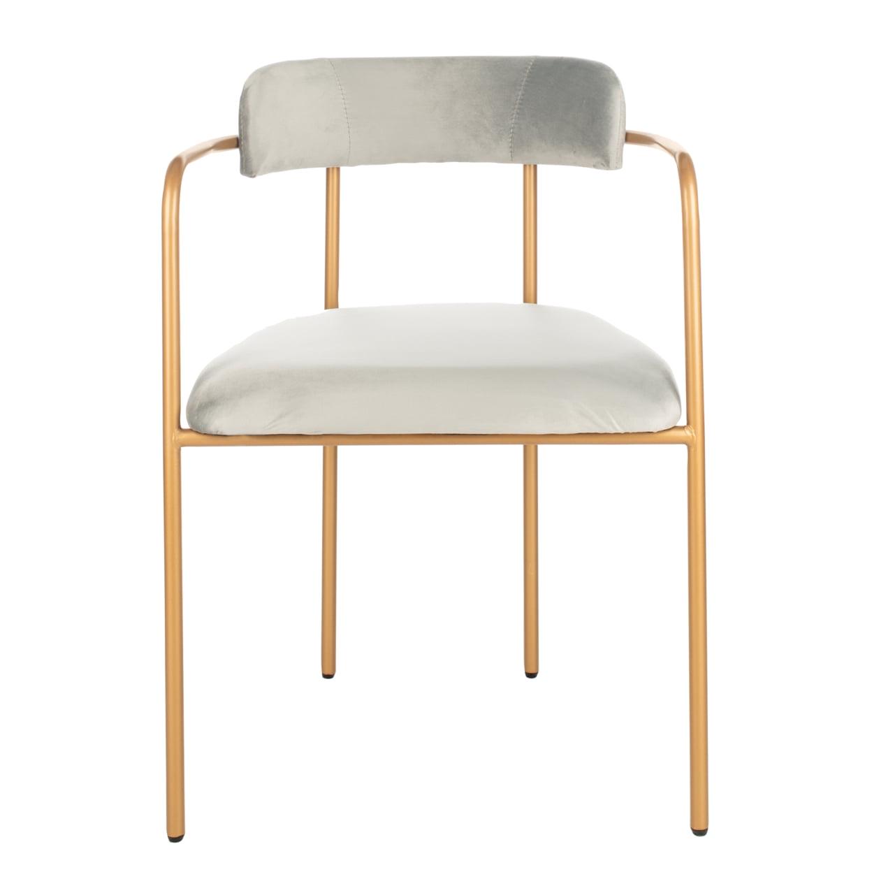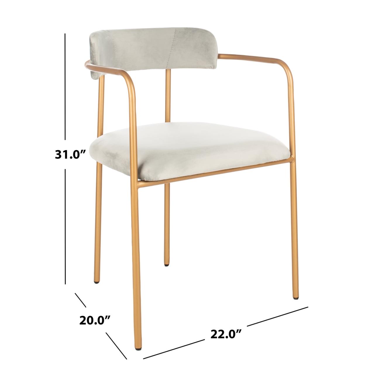 SAFAVIEH Camille Side Chair Grey / Gold Sleek and sophisticated, this Camille Side Chair adds instant flair to your decor. Camille’s clean-lined open frame shines in a liquid gold finish perfectly paired with soft grey velvet, ensuring hours of comfortable seating in any room. Sold in sets of two.