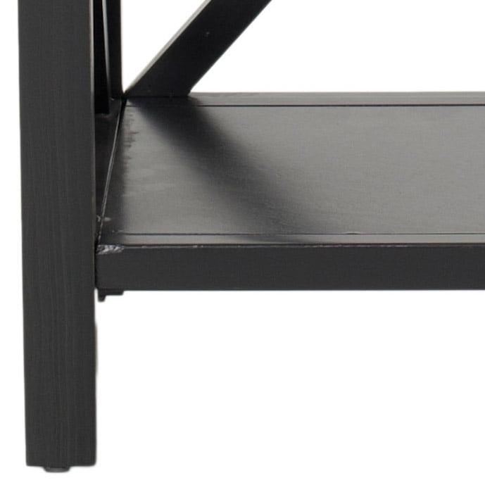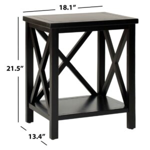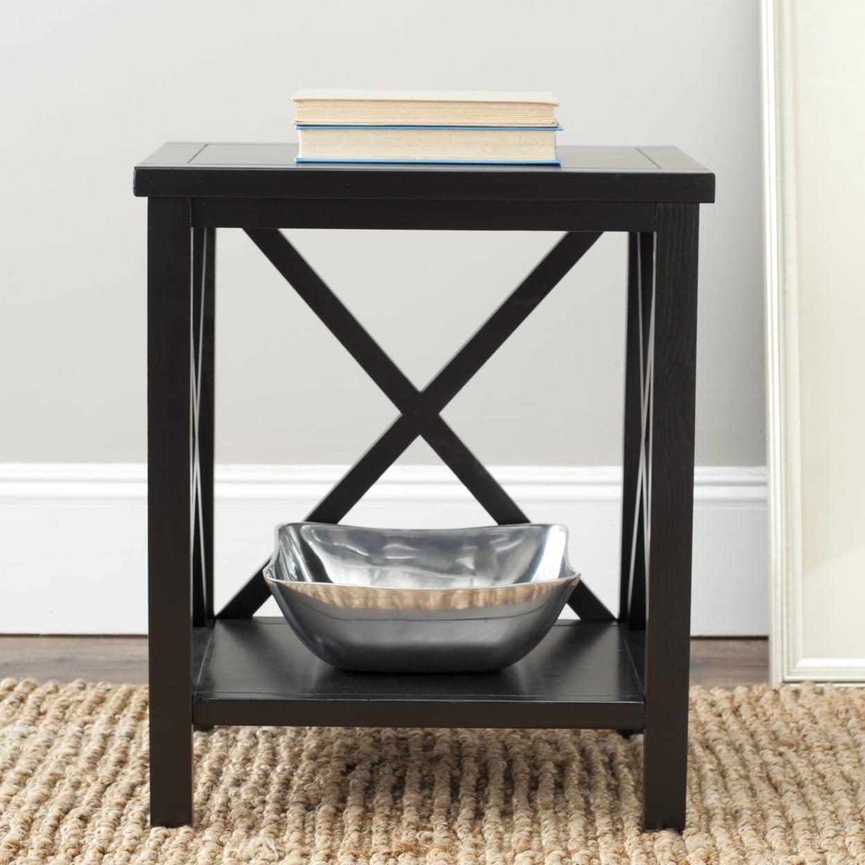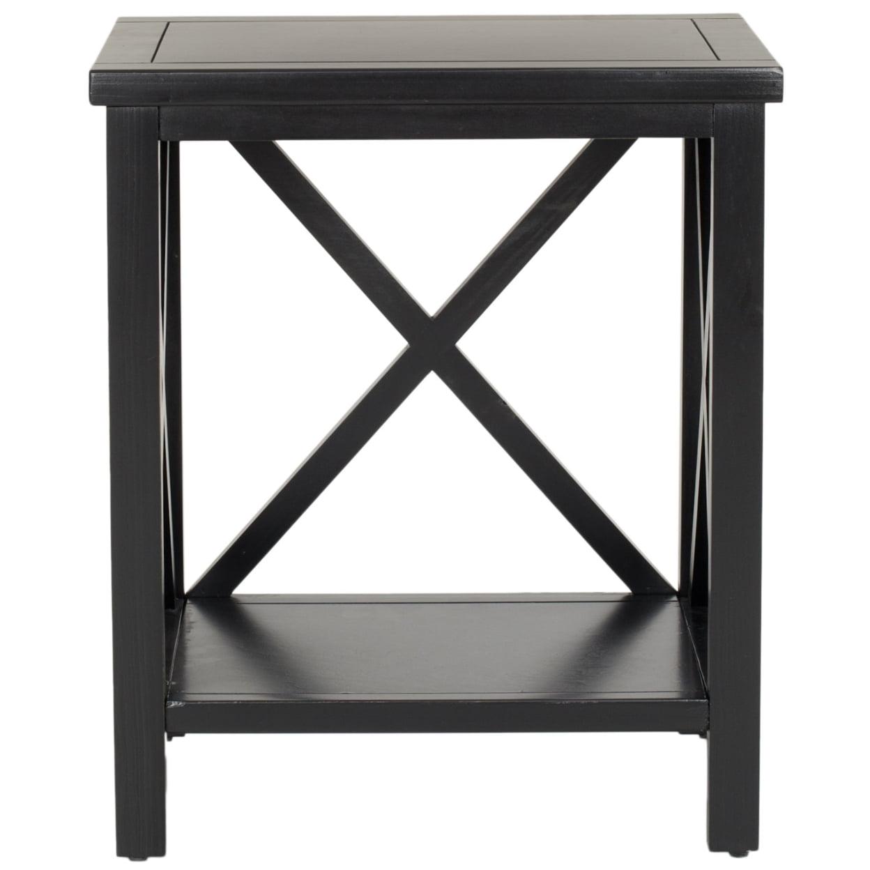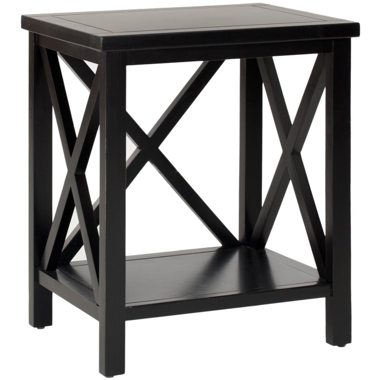 SAFAVIEH Candence Cross Back End Table Black Add architectural interest to your interior with this Candence End Table. The open X detailing on Candence’s black wood frame brings a touch of country charm, and a lower shelf provides space for storage and display. Perfect for using in pairs to frame a sofa or loveseat.