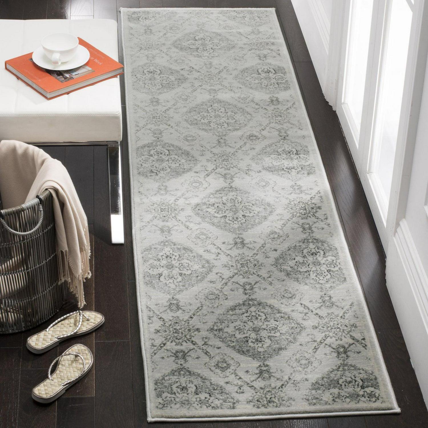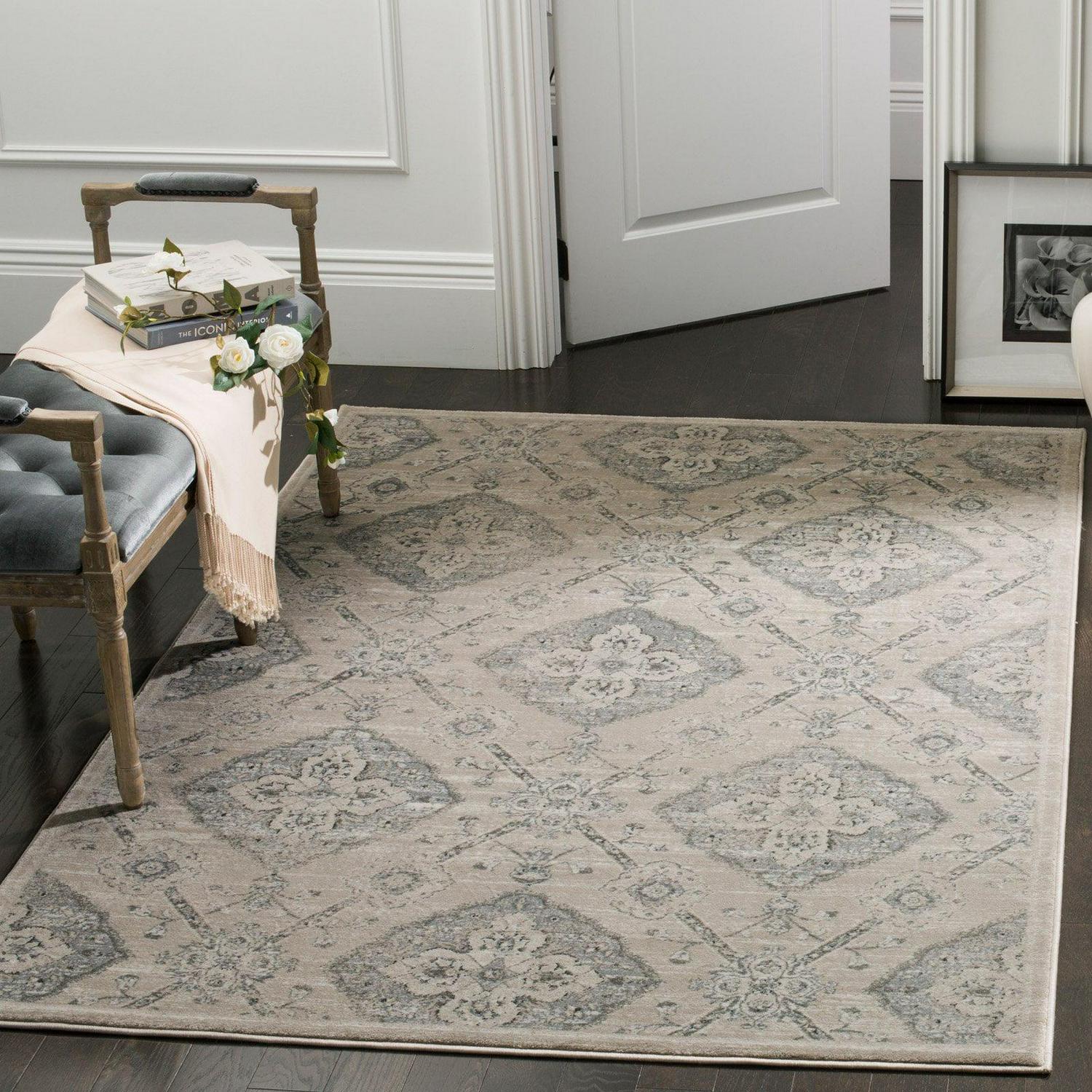 SAFAVIEH Carnegie Rosalynne Damask Area Rug, Silver/Grey, 8′ x 10′