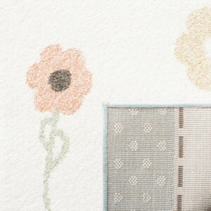 SAFAVIEH Carousel Kids Collection CRK120A Ivory Rug Carousel Kids Rugs turn fanciful storybook animals and beloved motifs into colorful decor for kids. With pleasing hues and playful etched designs, these delightful kid’s rugs sparkle in children’s favorite rooms. Carousel Kids rugs are machine-woven using soft yet durable synthetic yarns for lasting beauty even when subjected to years of busy little feet. Rug has an approximate thickness of 0.5 inches.