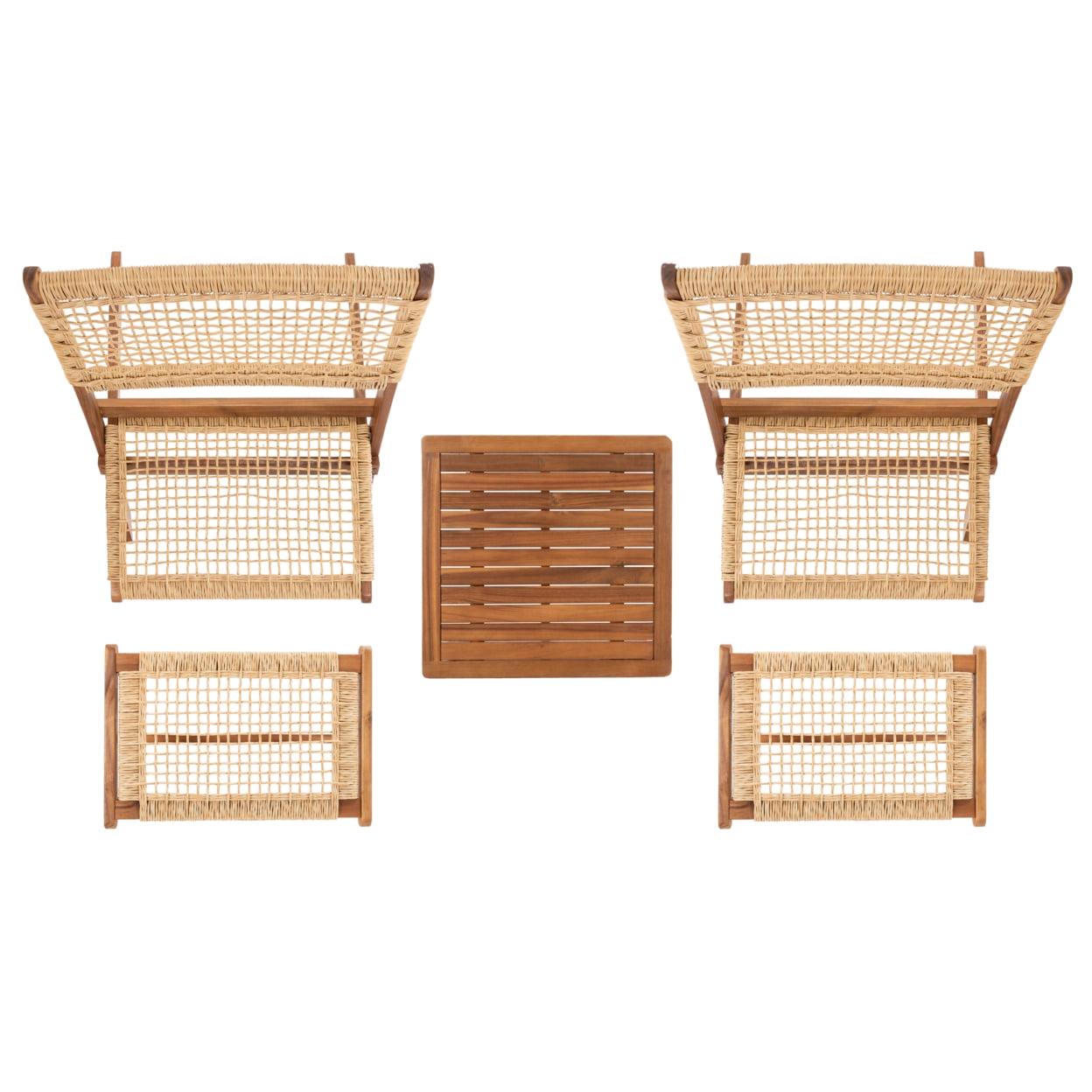 SAFAVIEH Casella Outdoor Patio 5 Piece Conversation Set, Natural/Light Brown