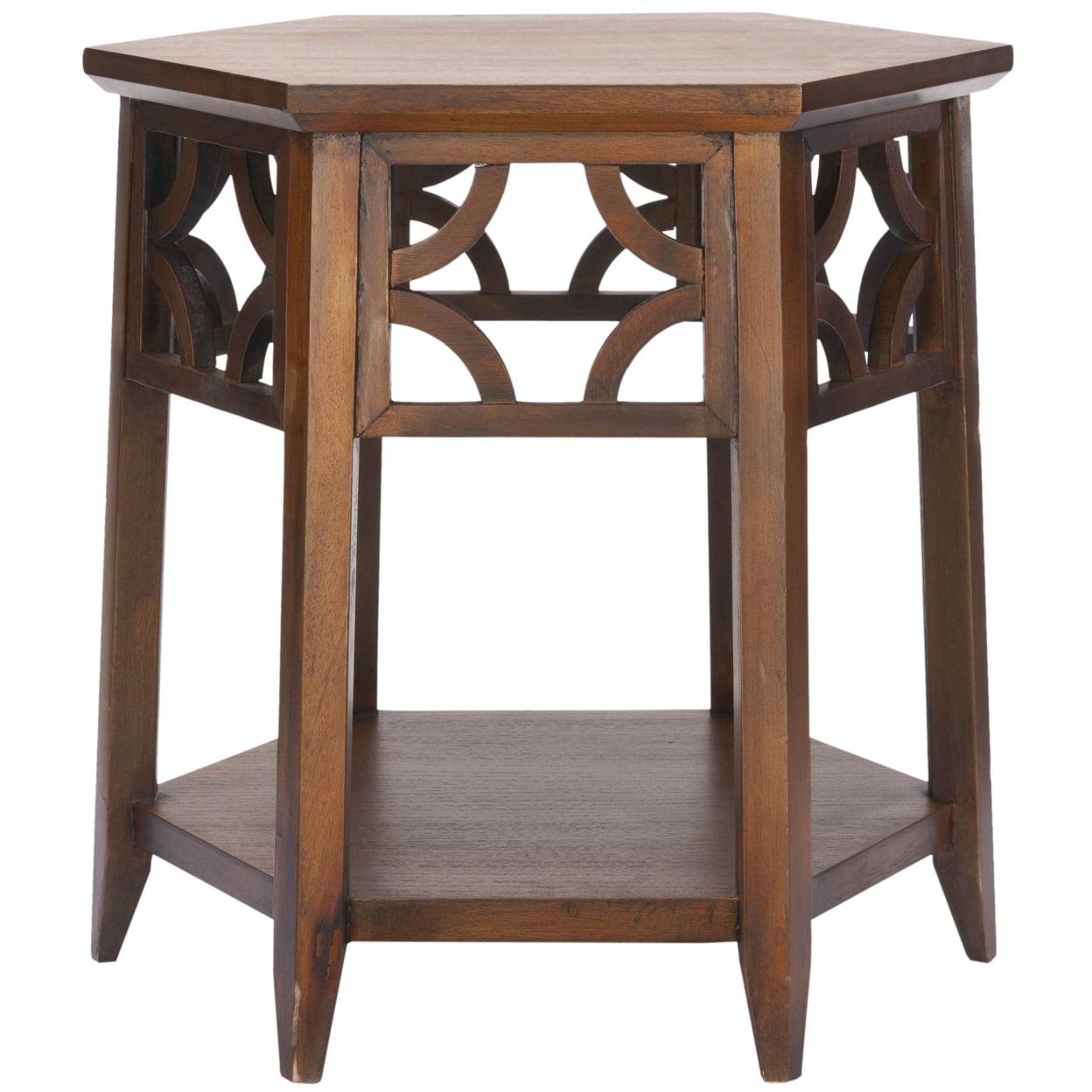 SAFAVIEH Connor Hexagon End Table Brown The Connor Hexagon End Table has six times the charm. This petite, light brown accent table brings a soft, modern touch to any interior. Crafted with bayur wood, Connor is a solid investment in style.