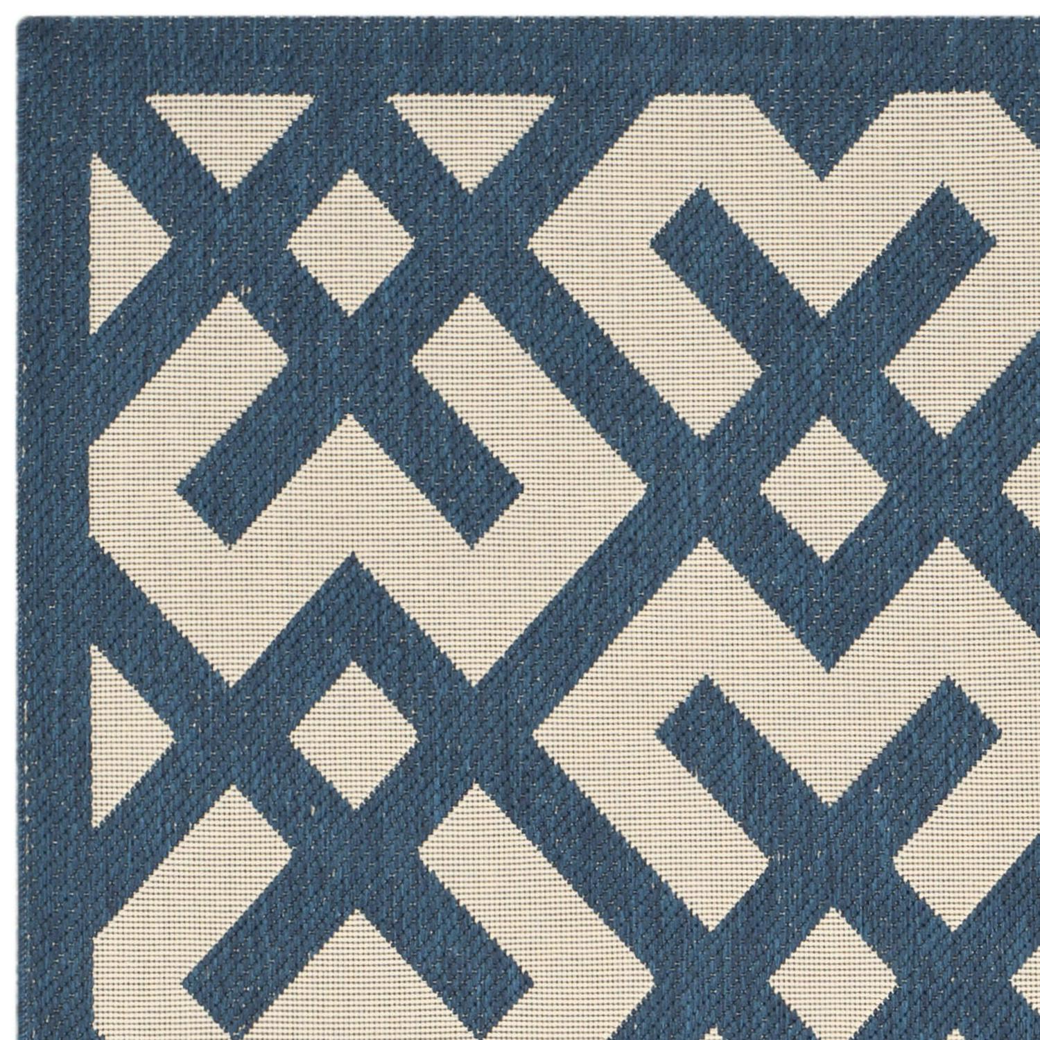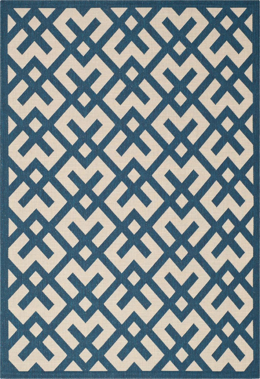 SAFAVIEH Courtyard Alvin Geometric Indoor/Outdoor Area Rug, 9′ x 12′, Navy/Beige