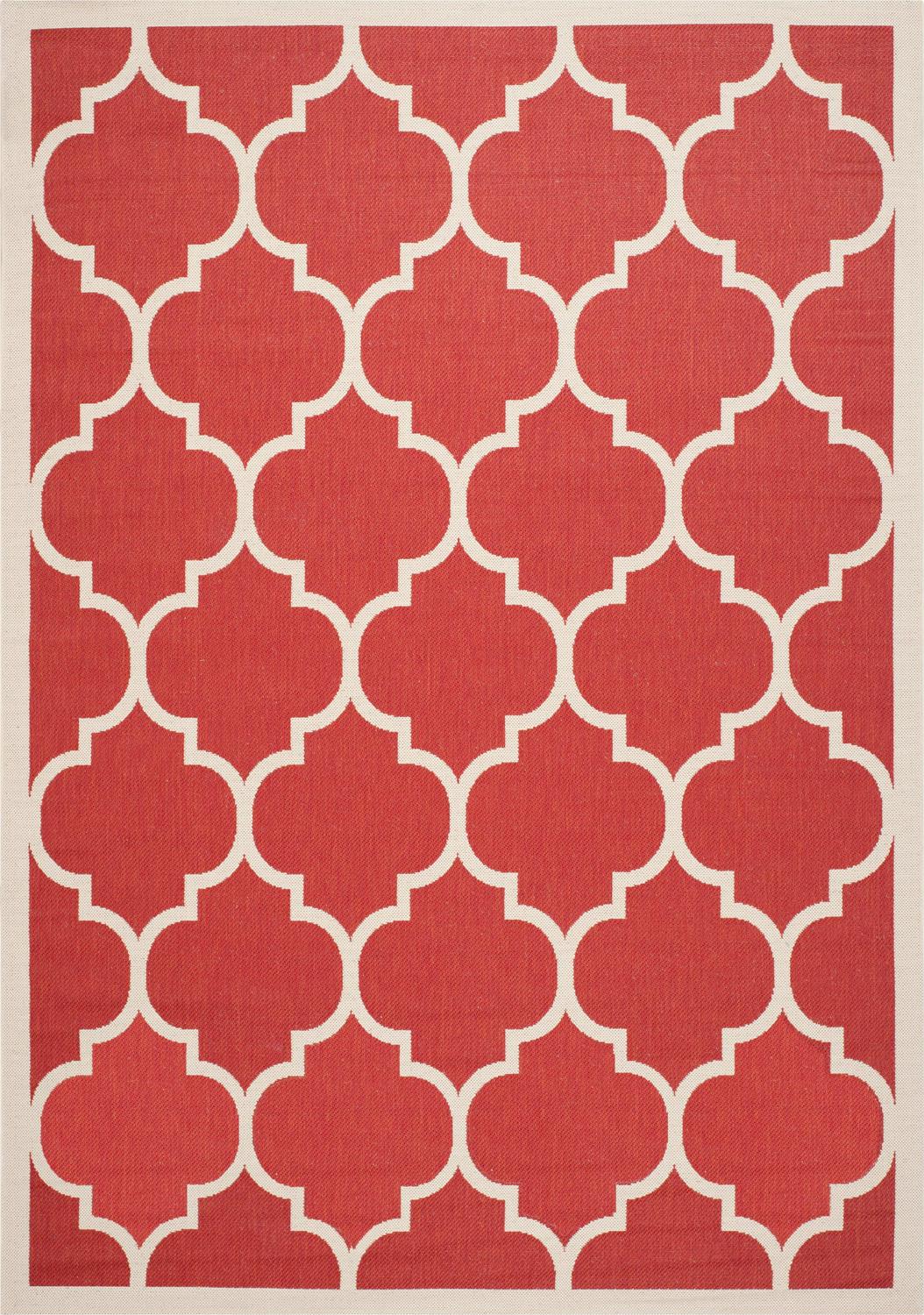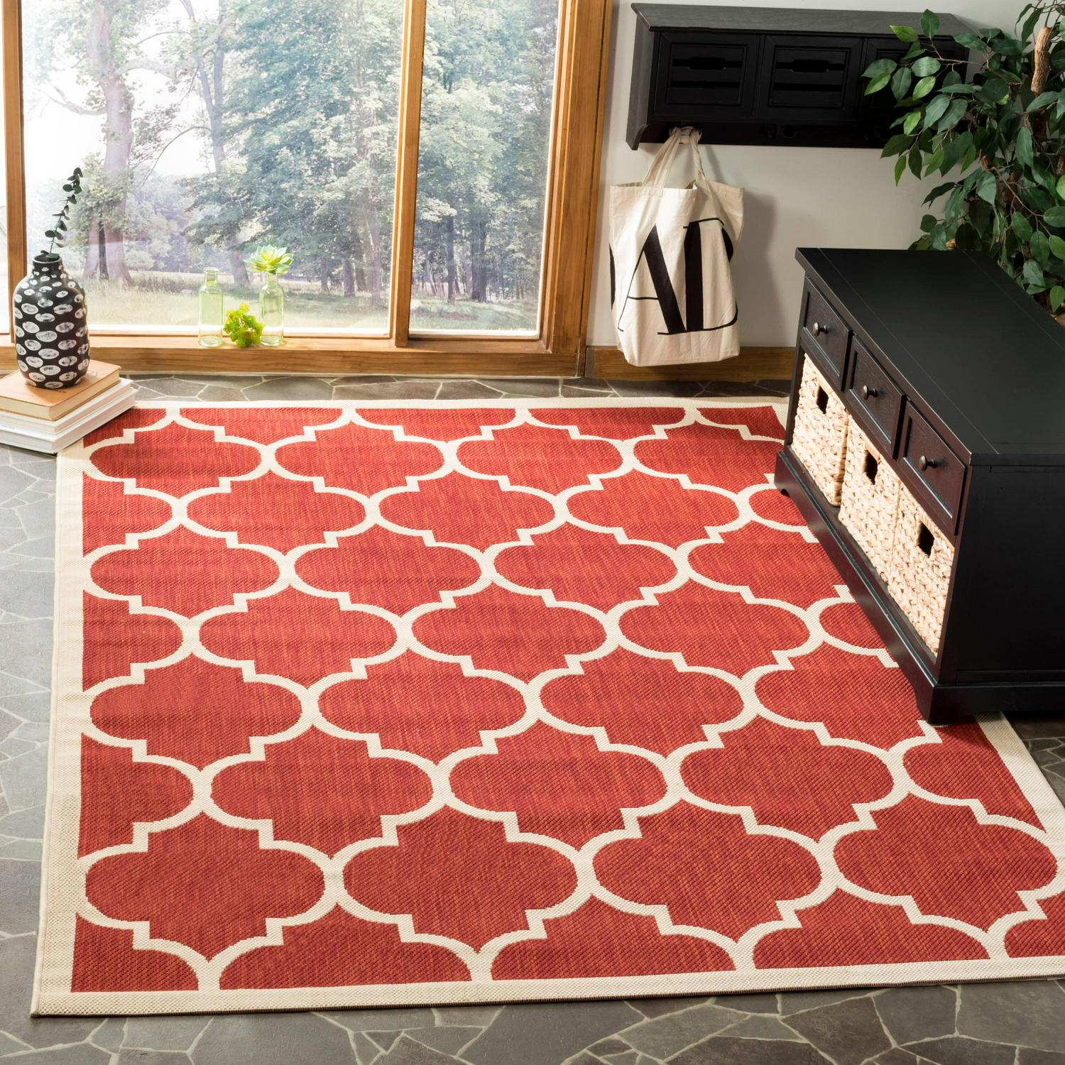 Safavieh Courtyard Alyssa Geometric Indoor/Outdoor Area Rug, 6’7 x 9’6 , Red/Bone