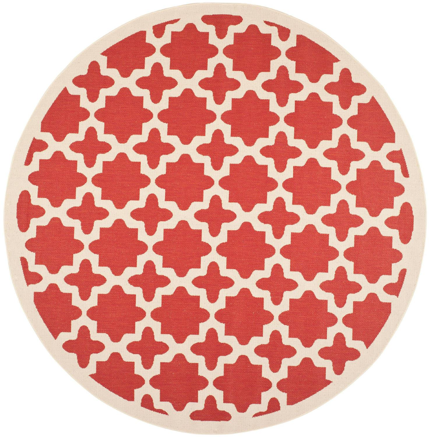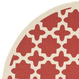 SAFAVIEH Courtyard Amanda Geometric Indoor/Outdoor Area Rug, 7’10 x 7’10 Round, Red/Bone