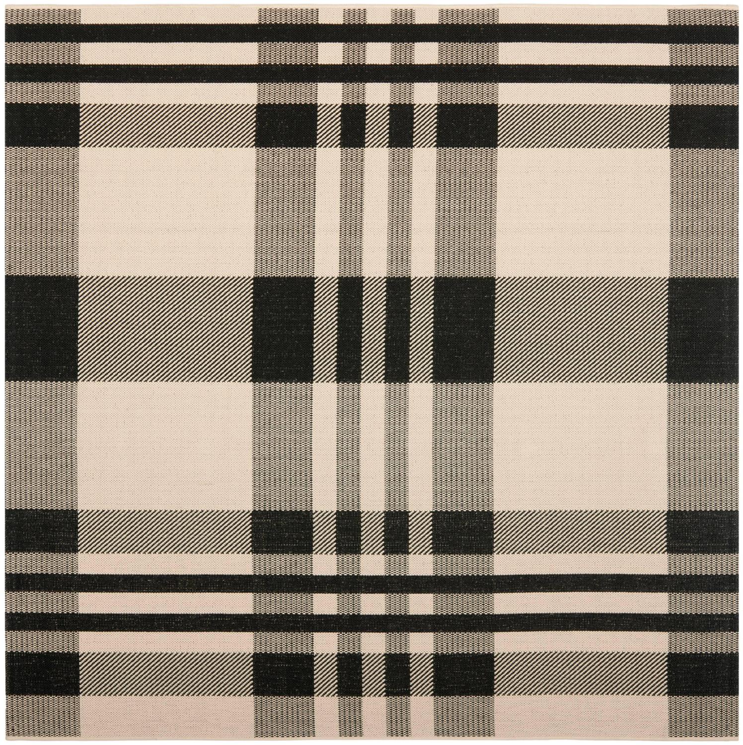 SAFAVIEH Courtyard Benjamin Plaid Indoor/Outdoor Area Rug, 6’7 x 6’7 Square, Black/Bone