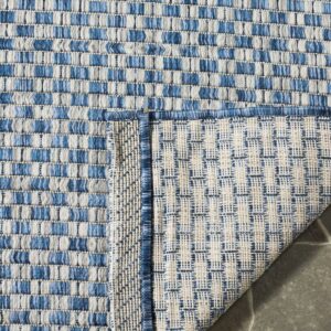 SAFAVIEH Courtyard Blair Geometric Indoor/Outdoor Area Rug, 5’3 x 7’7 , Blue/Light Grey