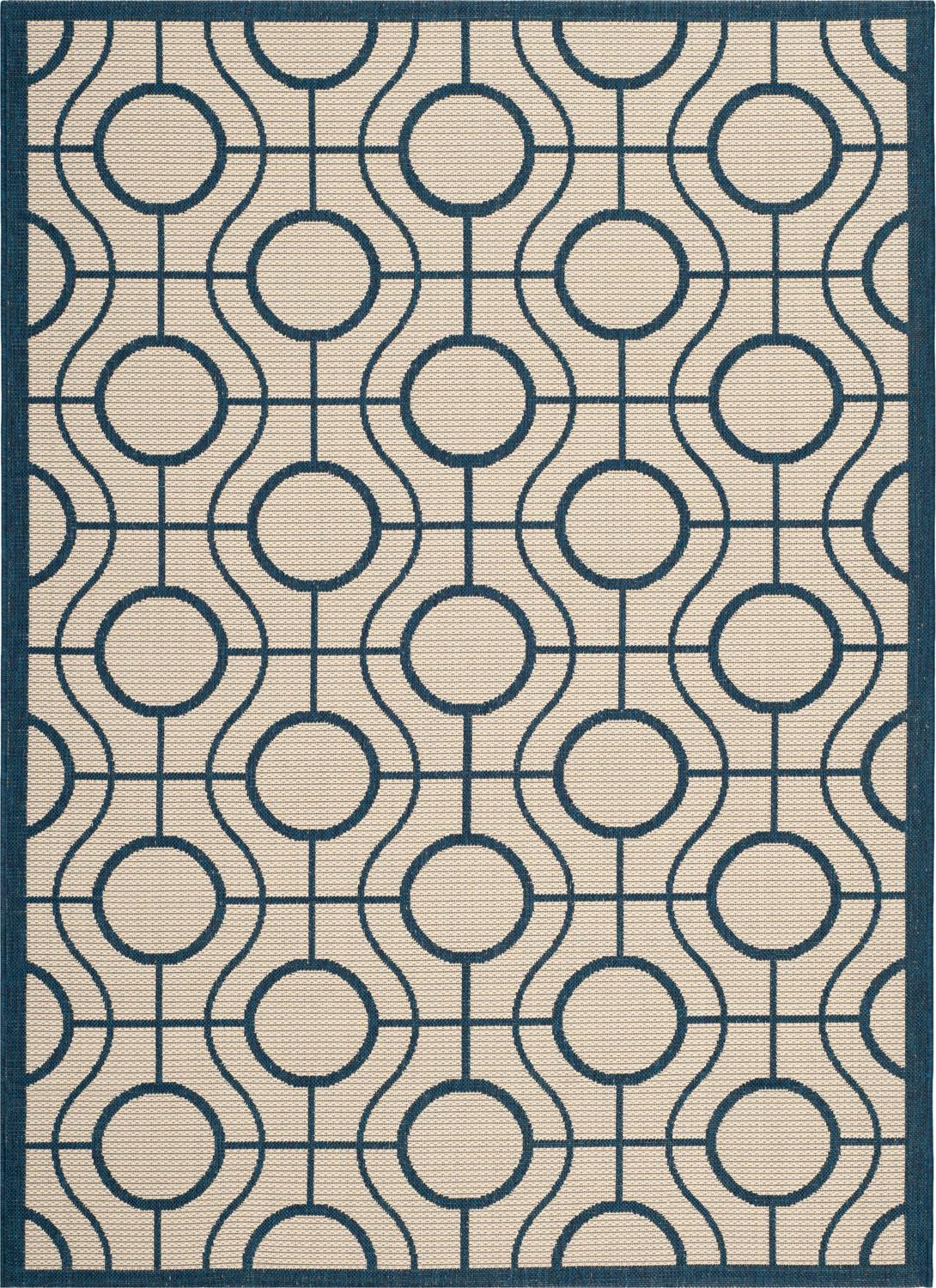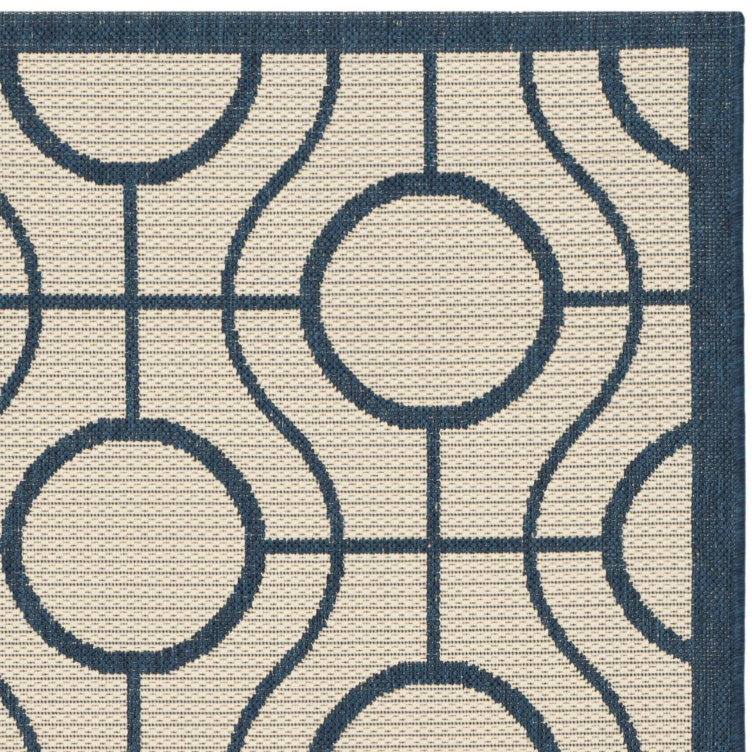 SAFAVIEH Courtyard Brian Geometric Indoor/Outdoor Area Rug, 5’3 x 7’7 , Beige/Navy