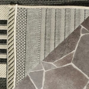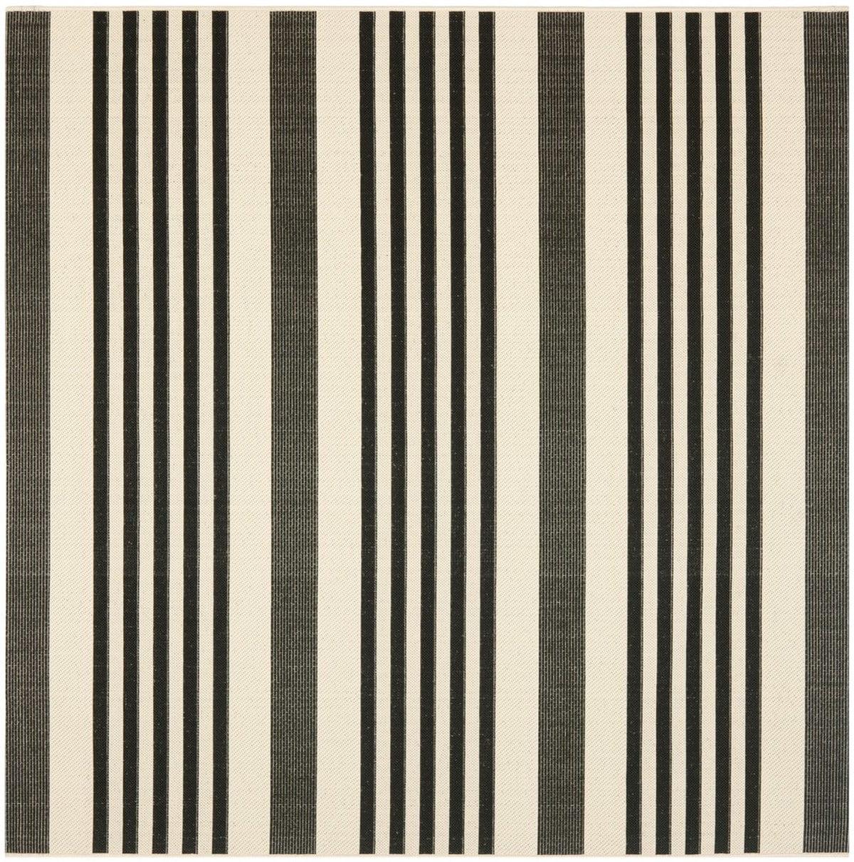 SAFAVIEH Courtyard Caroline Striped Indoor/Outdoor Area Rug, 5’3 x 5’3 Square, Black/Bone