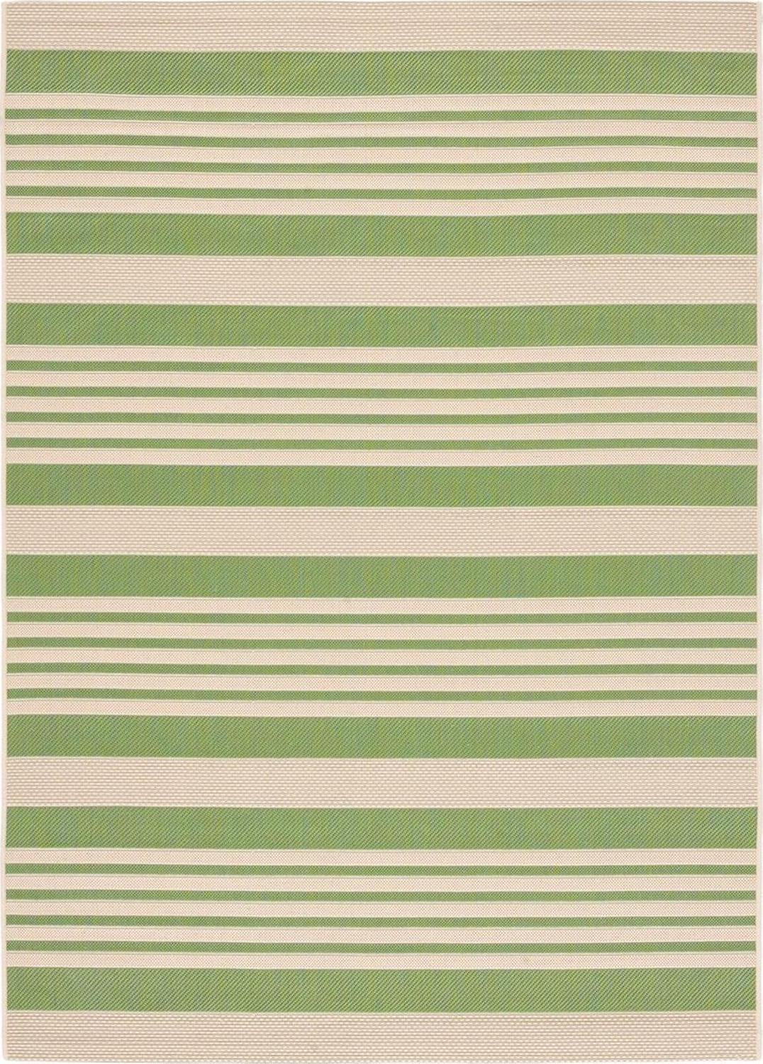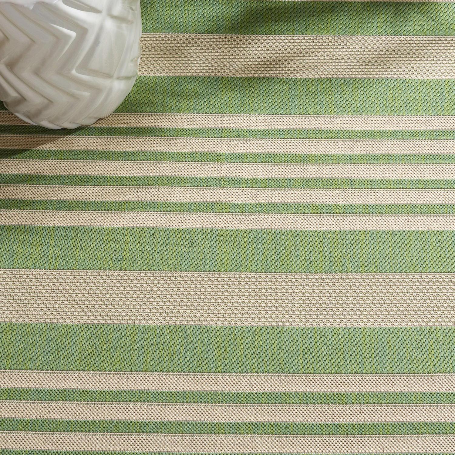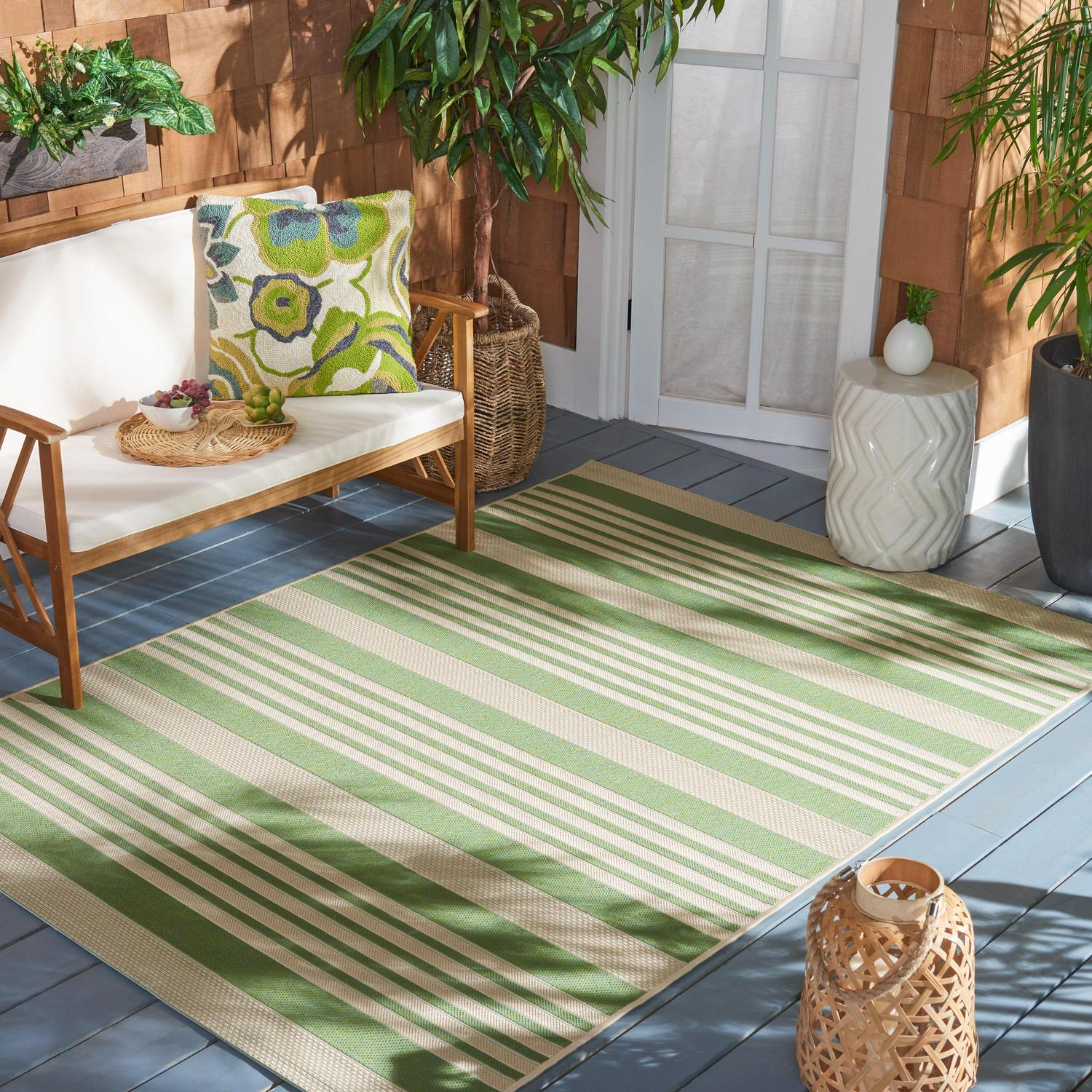 SAFAVIEH Courtyard Caroline Striped Indoor/Outdoor Area Rug, 6’7 x 9’6 , Green/Beige