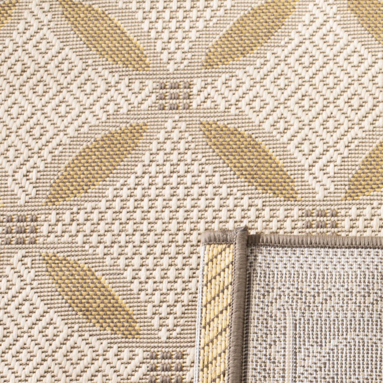 SAFAVIEH Outdoor CY7107-79A21 Courtyard Beige / Dark Beige Rug Instantly transform your backyard, patio, deck, sunroom, veranda, or poolside with a rug from SAFAVIEH s remarkable indoor-outdoor Courtyard Collection. This trendy rug is made with enhanced synthetic fibers in a special sisal weave that achieves intricate designs that are easy to maintain. Take outdoor decorating to the next level with this collection s inviting assortment of classic and contemporary designs and coveted fashion-forward colors.