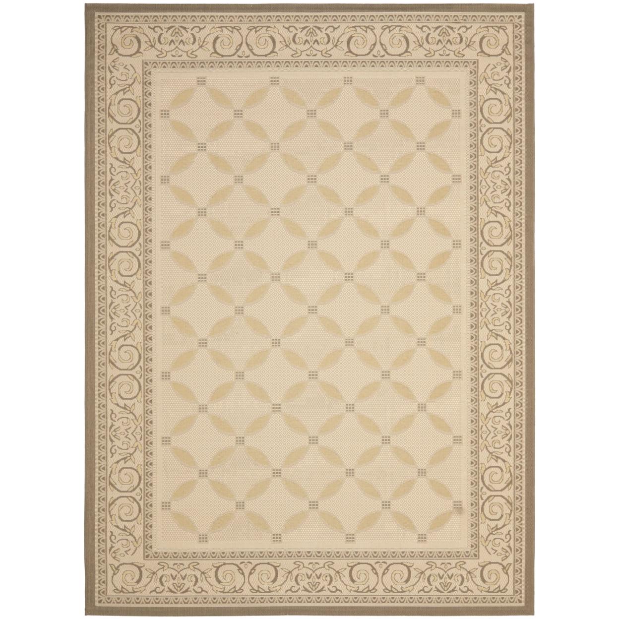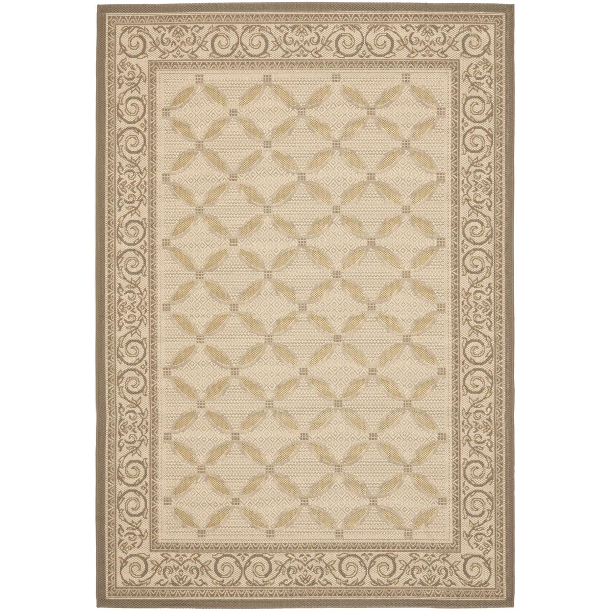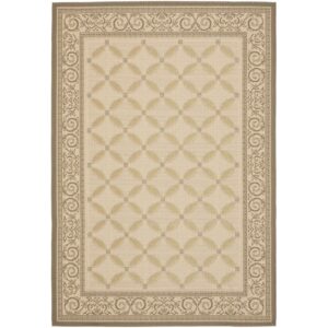 SAFAVIEH Courtyard Cohen Vine Bordered Indoor/Outdoor Area Rug, Beige/Dark Beige, 6’7 x 9’6