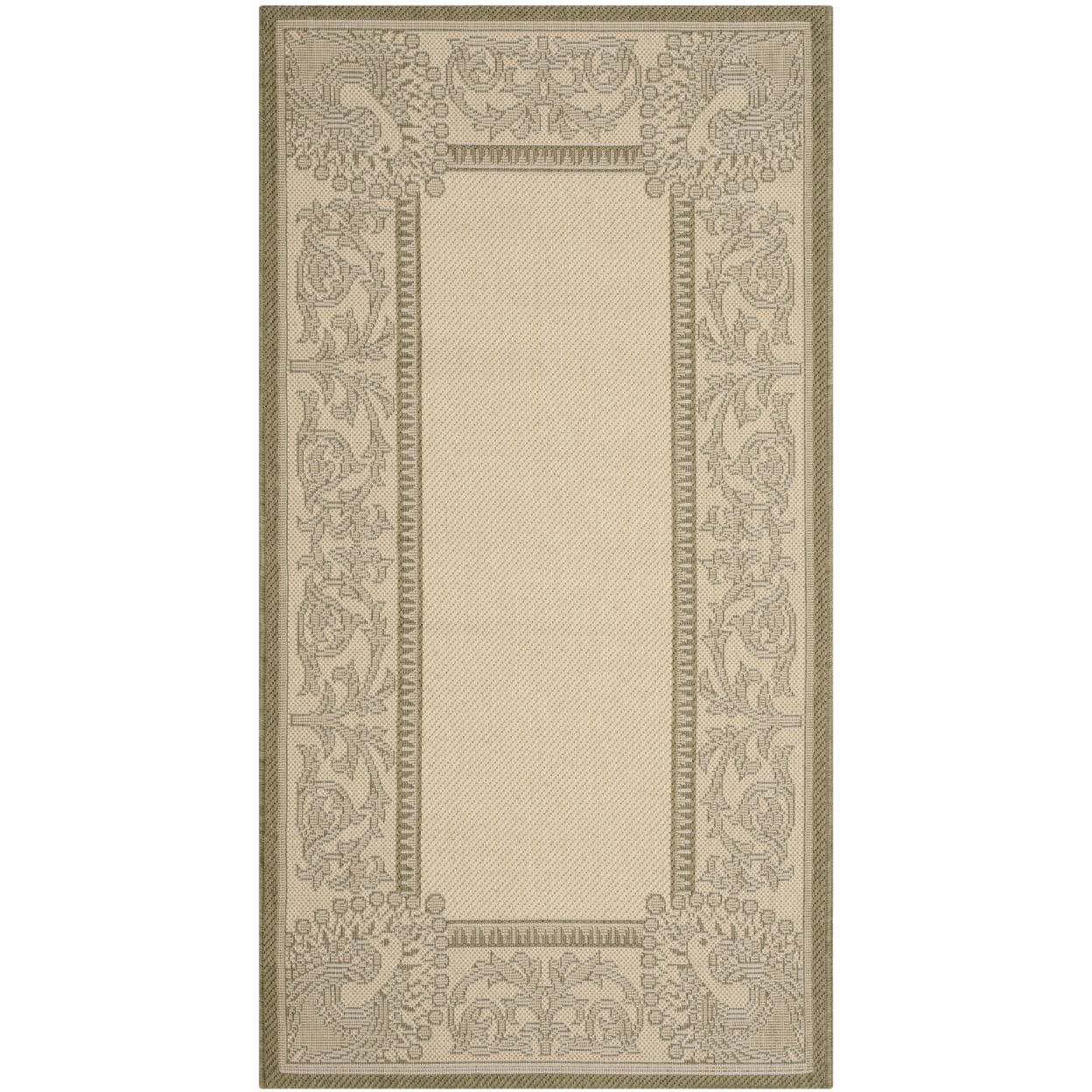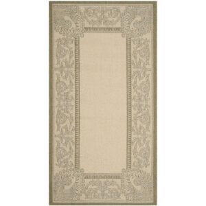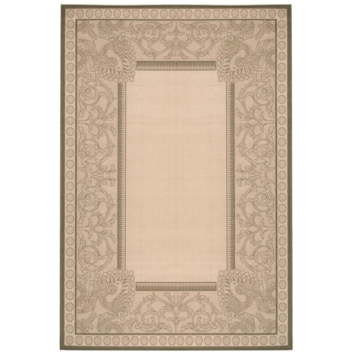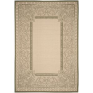SAFAVIEH Courtyard Cooper Floral Indoor/Outdoor Area Rug, 6’7 x 9’6 , Natural/Olive